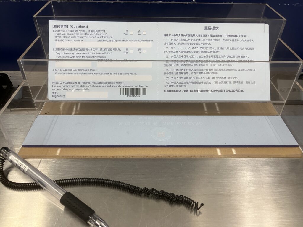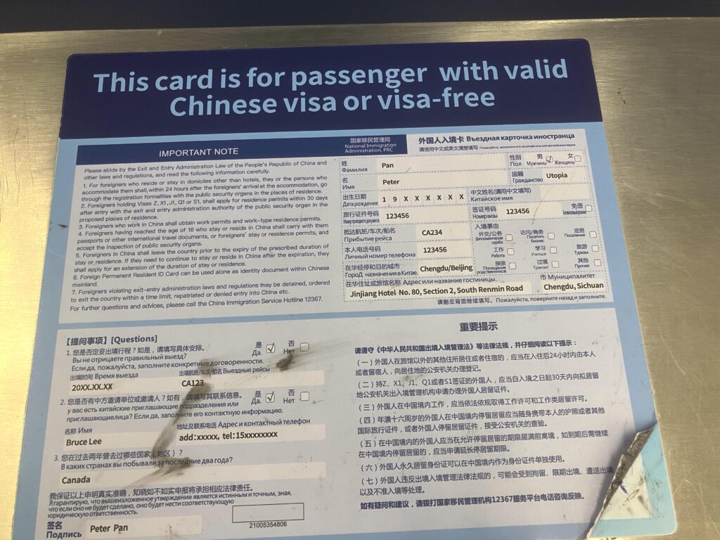 ※2025年12月から中国の入国カードのweb申請が開始され、そちらを強く勧めるようになってきています。