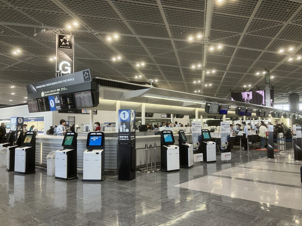 行きの成田空港でのチェックインカウンターは成田空港第1ターミナルのF&Gエリアです。今回の成都行きはGカウンターでのチェックインでした。