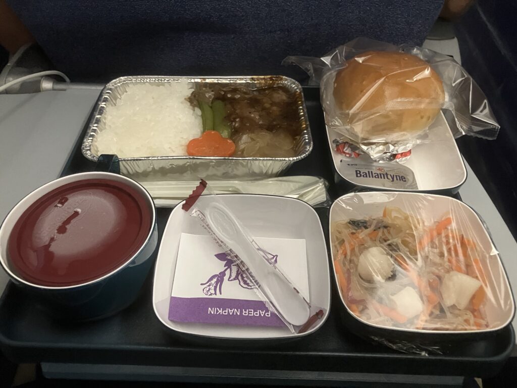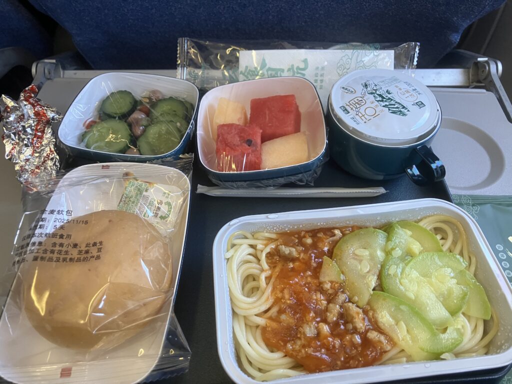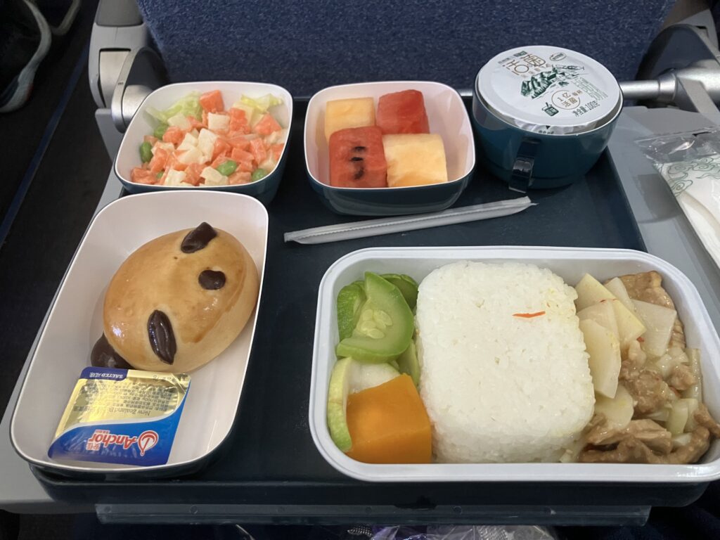 今回は、ポークを選択しました。4時間強で成都天府国際空港に到着です。