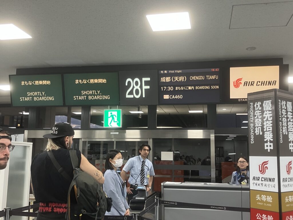 成田発、成都行きの便は搭乗口は28Fと、搭乗口からバスに乗るタイプで、成田空港の国際線では非常に珍しいタイプです。