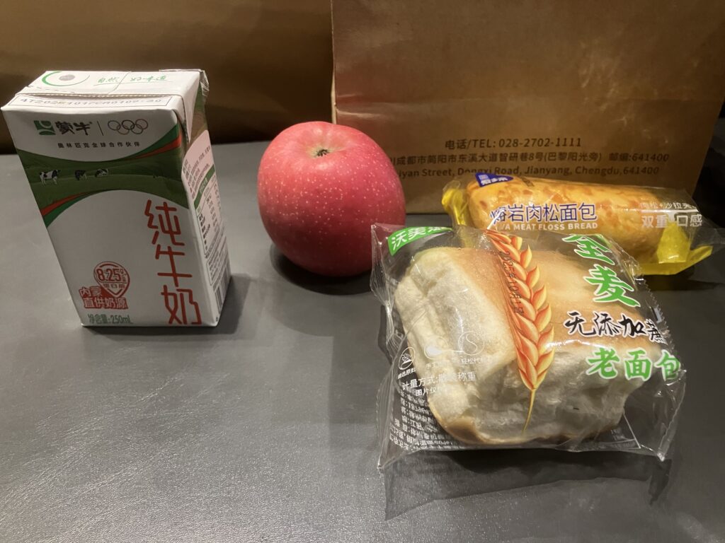 往路のトランジットホテルは、ラマダ成都江陽ホテルという空港近くの4つ星ホテルです。朝食と送迎が無料で付いていますが、今回はカトマンズ行きのフライトが早いため、チェックアウト時に朝食ボックスをもらいました。