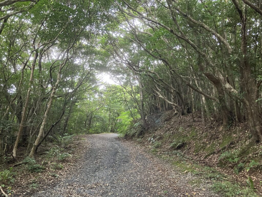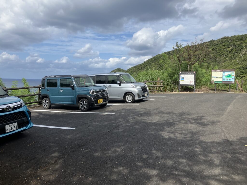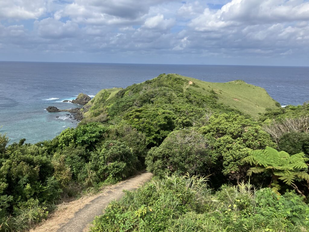 宮古崎へは国直から600mほど坂道を登っていきます。左手に駐車場がありますので、そこで自転車を停めて遊歩道を進んでいきます。