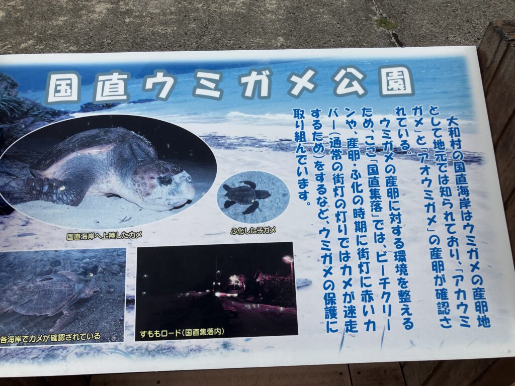 国直海岸はウミガメの産卵で知られるキレイな白い砂浜です。近くには、民家の間を通るフクギ並木がありますので、一緒に見学をすると良いと思います。