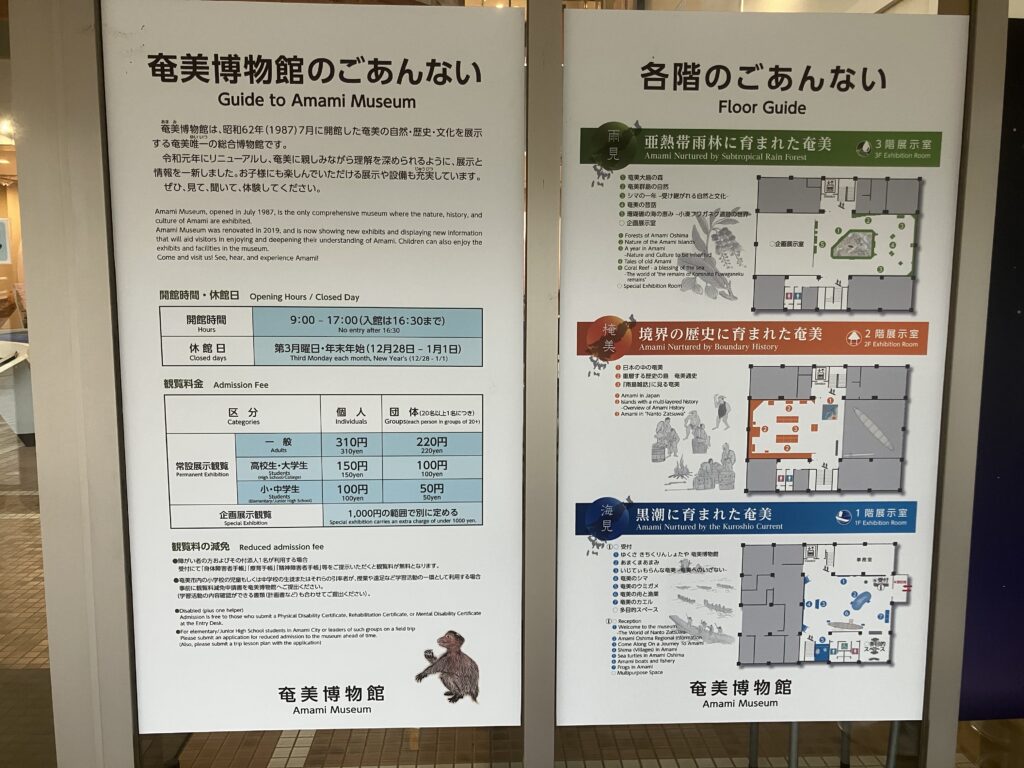 奄美博物館は名瀬の中心からは1.5kmほど離れており、歩いて30分くらいで到着します。入場料は310円で1階から3階までが展示となっております。
