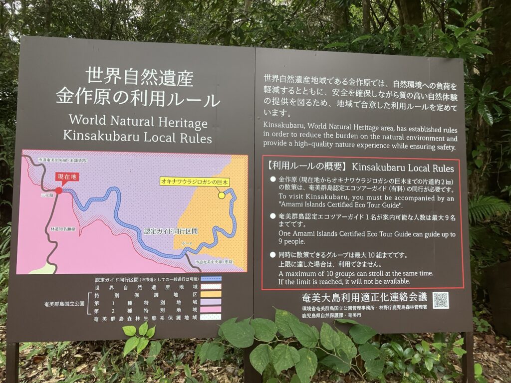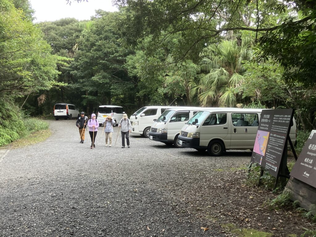 ツアー当日は、8:30に旅行会社のオフィスを出発し、名瀬運動公園でトイレ休憩後、9:20くらいに金作原の入り口駐車場に到着します。