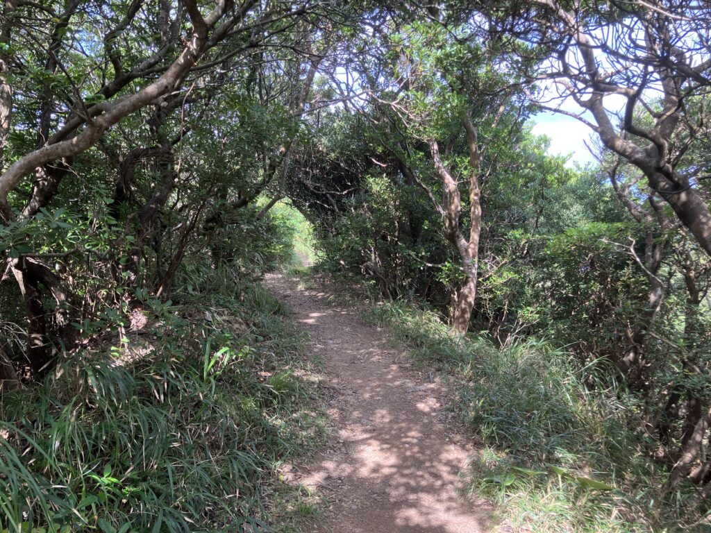 遊歩道は約1,500mあり、片道で20分ほどかかります。途中エメラルドグリーンの海を眺めながら進んでいくと、コンクリートの展望所のある開けた場所に着きます。