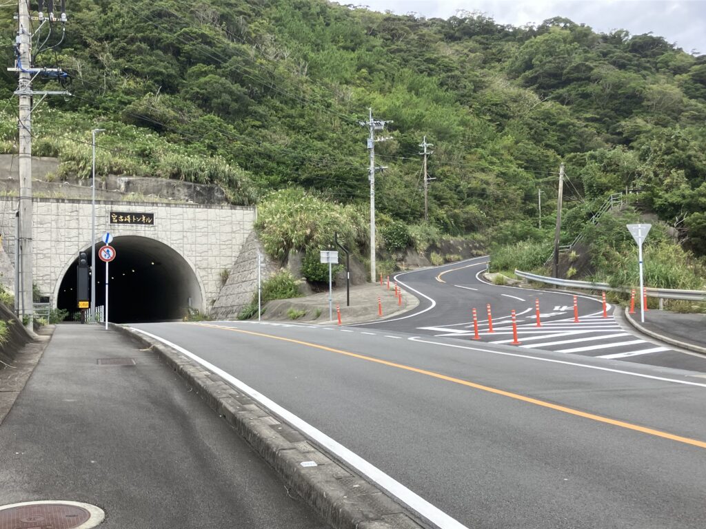 最後のトンネルの名前が宮古崎トンネルという名前で非常に長いトンネルです。車の場合はトンネルの手前を右折して山道の登っていくのですが、自転車の場合は、山道は厳しいので、必ずトンネルを通って国直にいきましょう。
