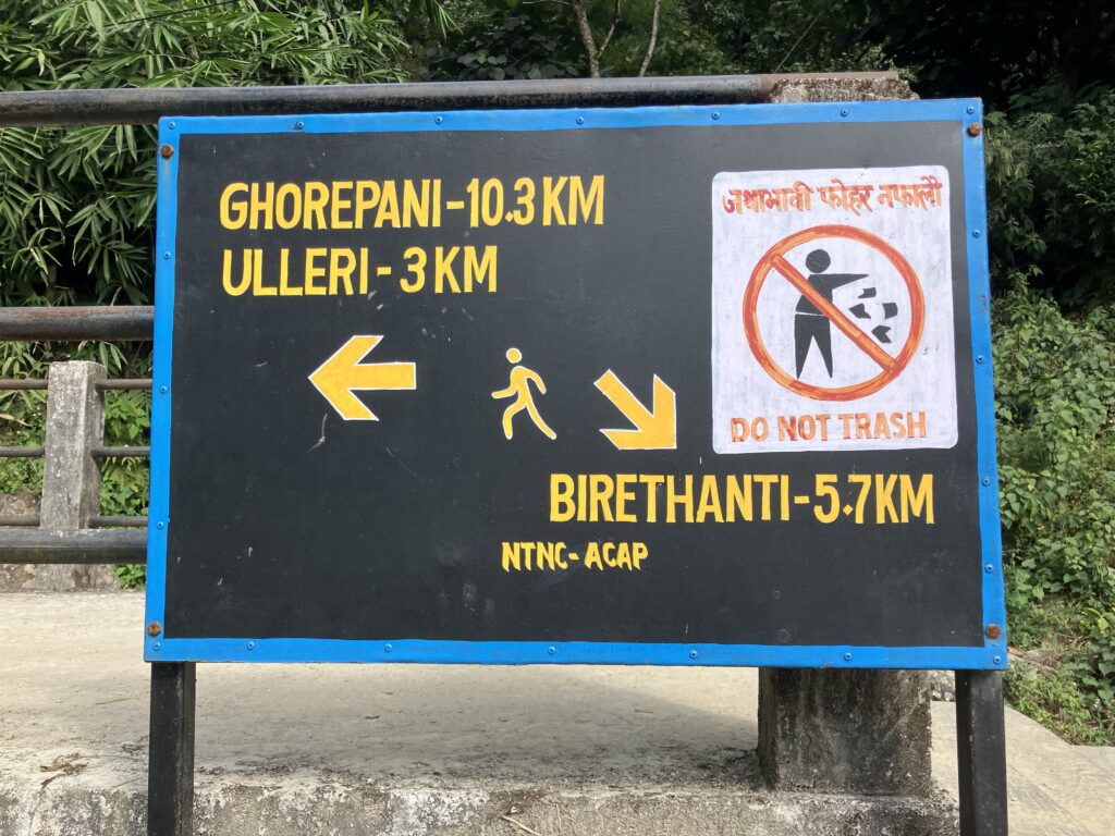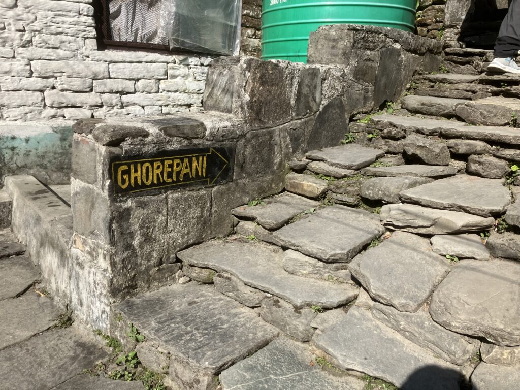 このルートはゴレパニ(Ghorepani)が1番奥地に位置しており、メインの観光地のため、「ゴレパニ」と書かれた看板がよく立っています。