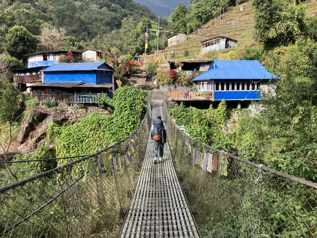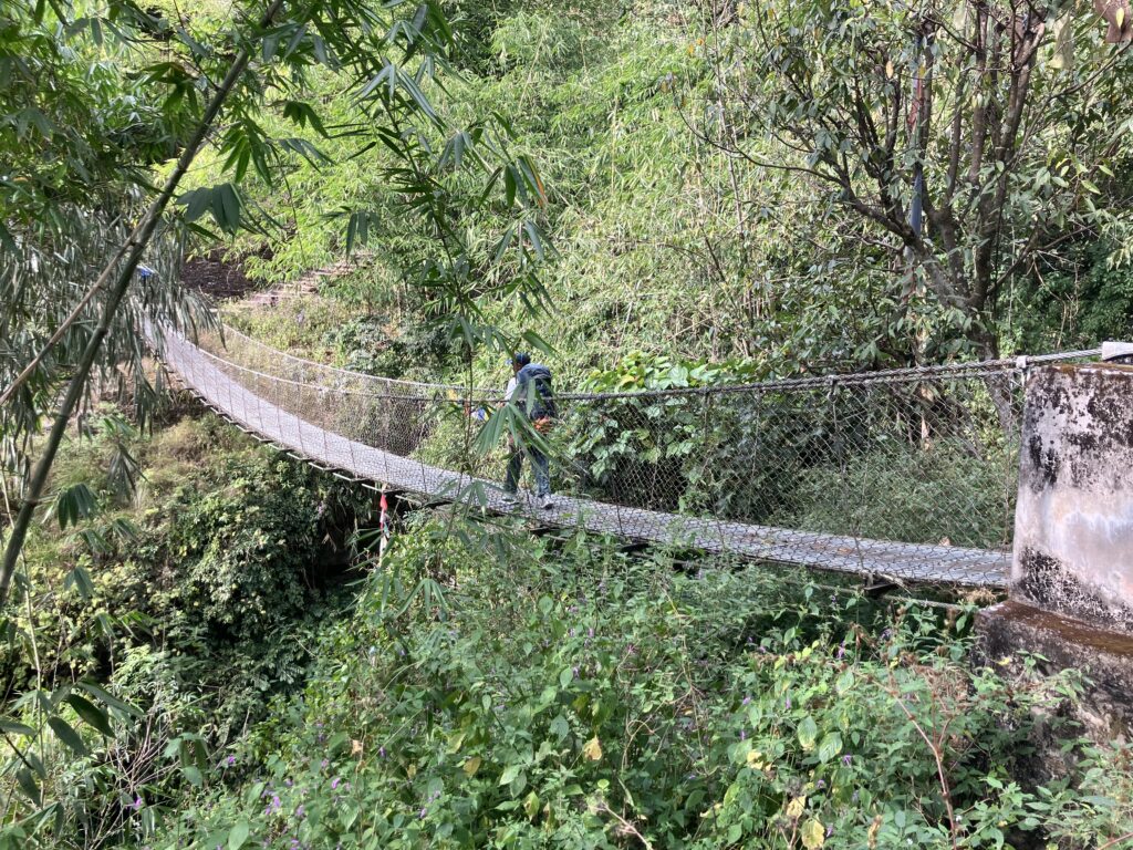 ランチ後にヒレを出発すると、15分くらいで吊り橋が複数かかる宿やレストランなどが点在する村のティルケドゥンガ(Tirkhedhunga、1,577m)に到着します。