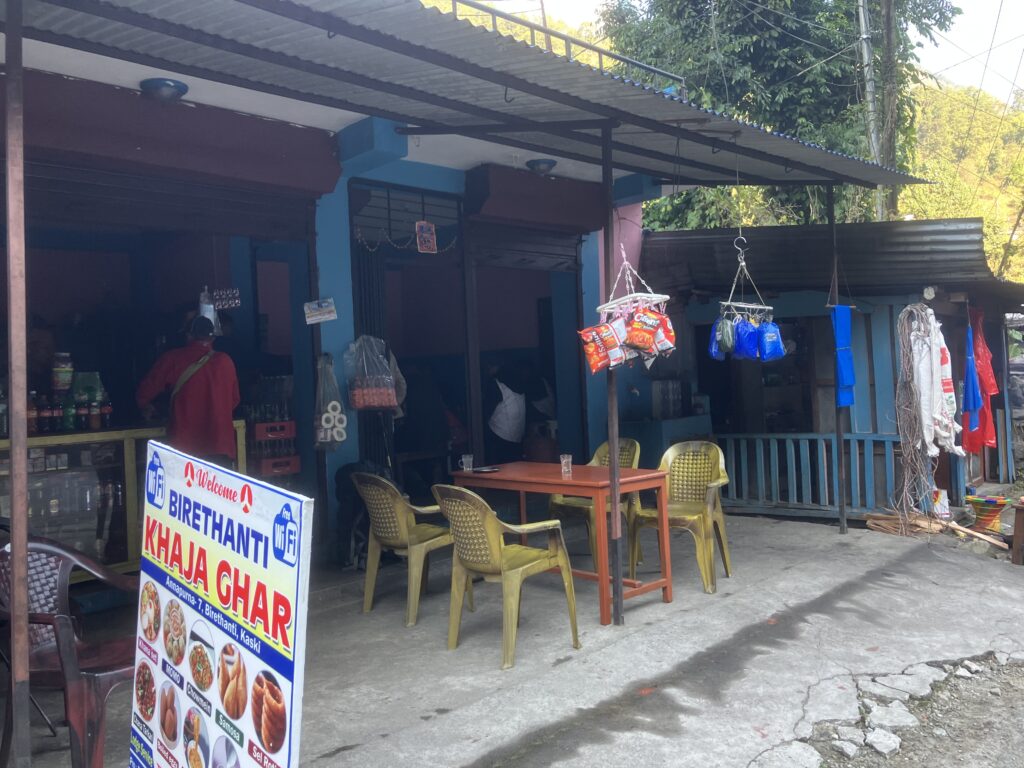 歩いて30分ほどで隣の村のビレタンティ(Birethanti、1,100m)に到着します。本格的なトレッキングを開始する前にビレタンティのカフェで、チャイとネパールブレッド(ネパール風のパン)、サモサ(インドの定番スナック)を食べました。