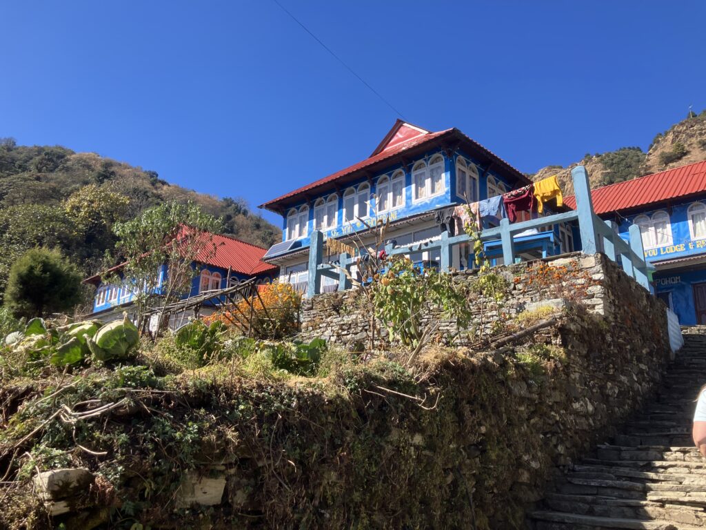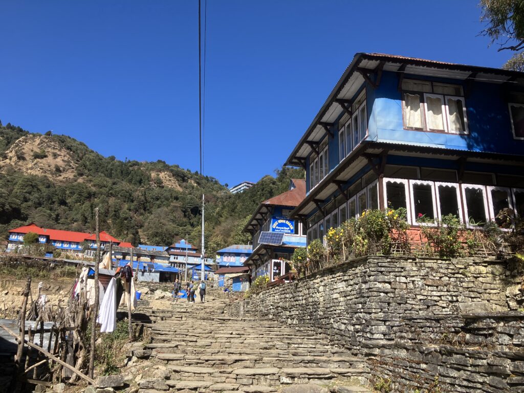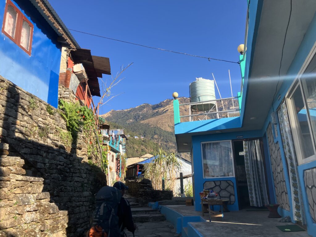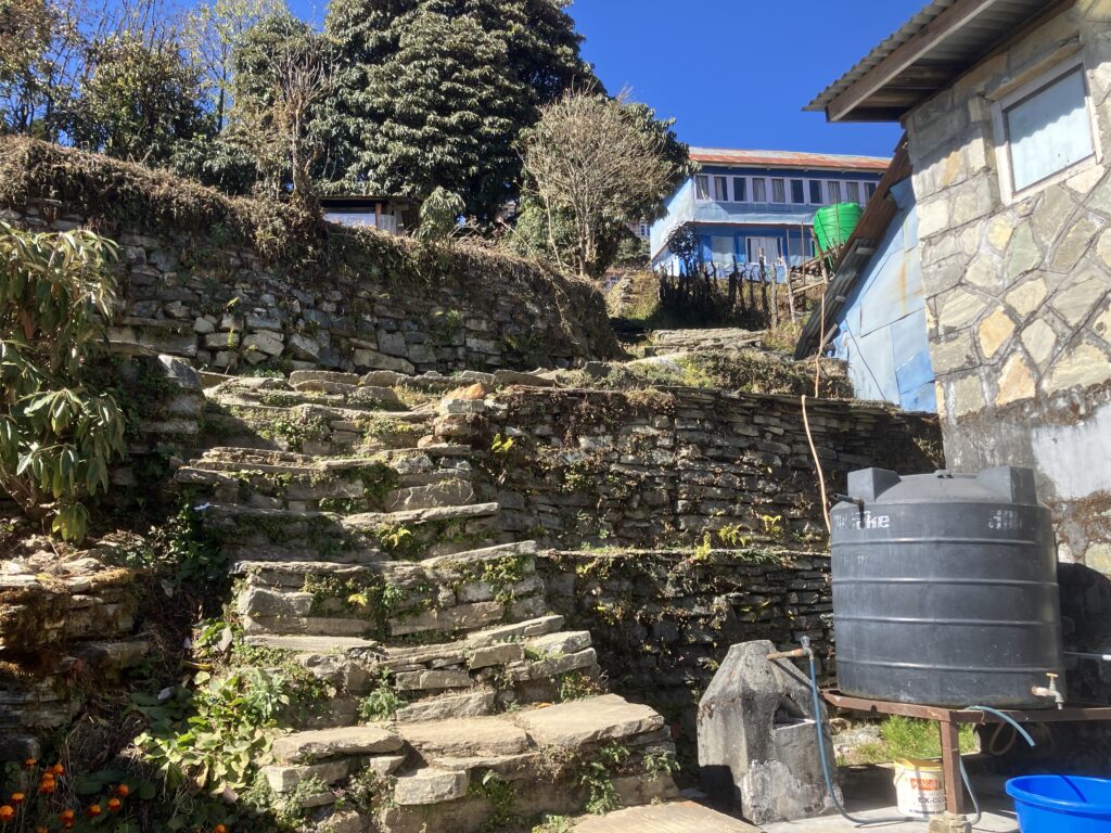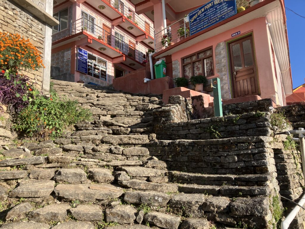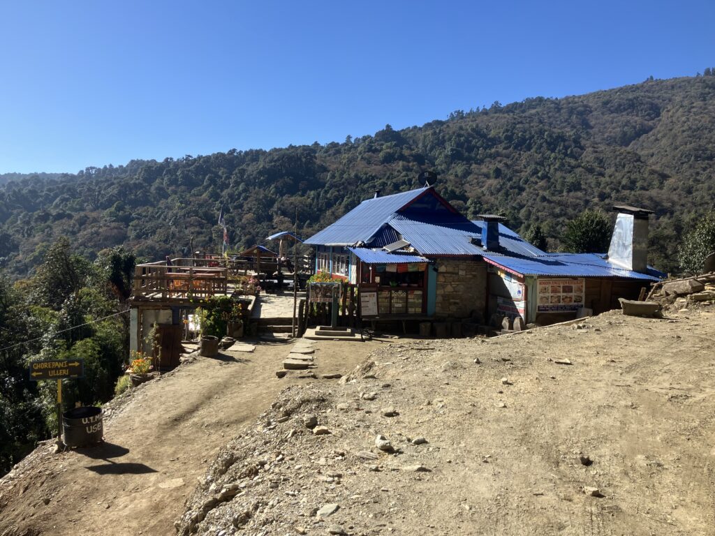 ゴレパニはこの地域のトレッキングの目玉であるプーン・ヒルの拠点となる村で、3つのトレッキングルートの合流地点でもあるため宿も多く、前日宿泊したウレリよりも比較的設備の整った村という印象です。