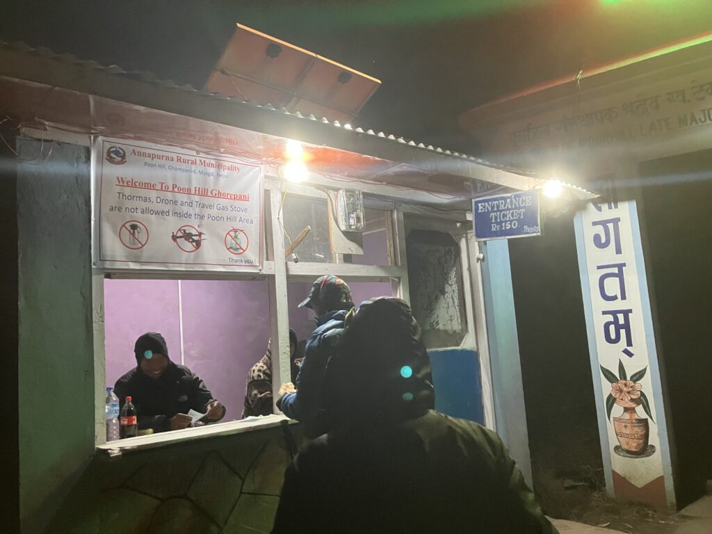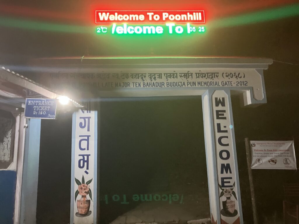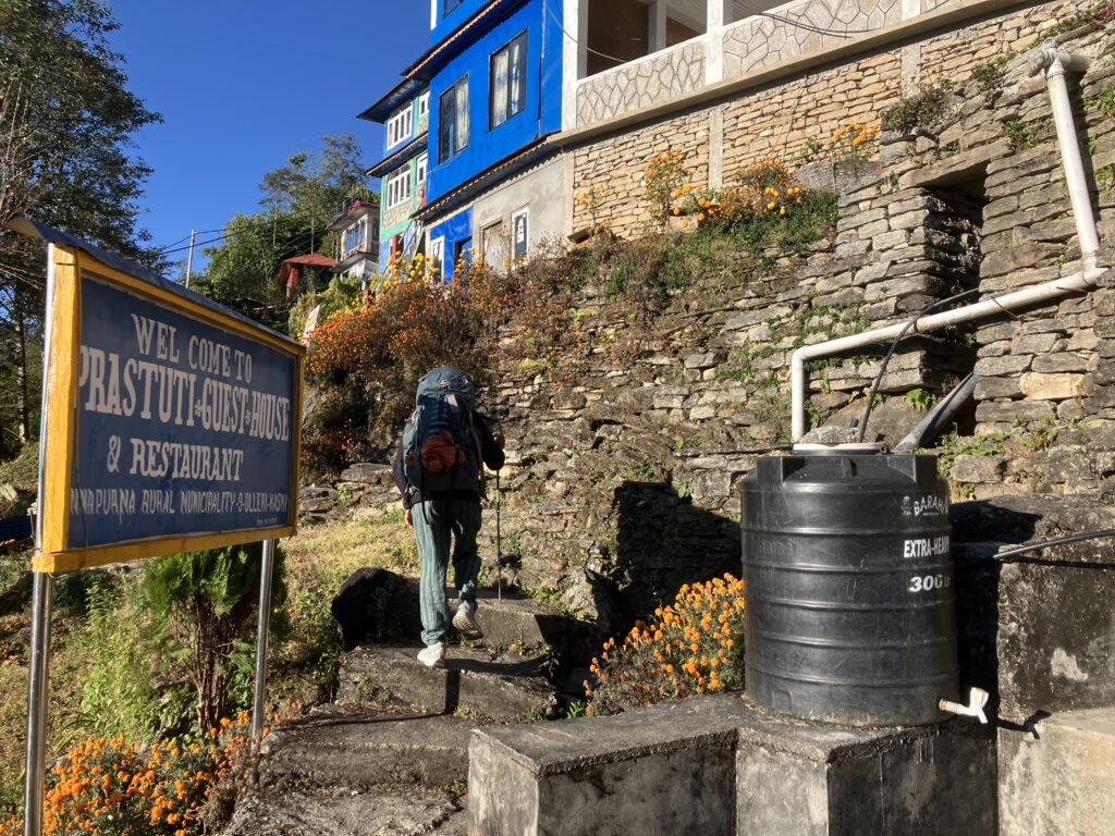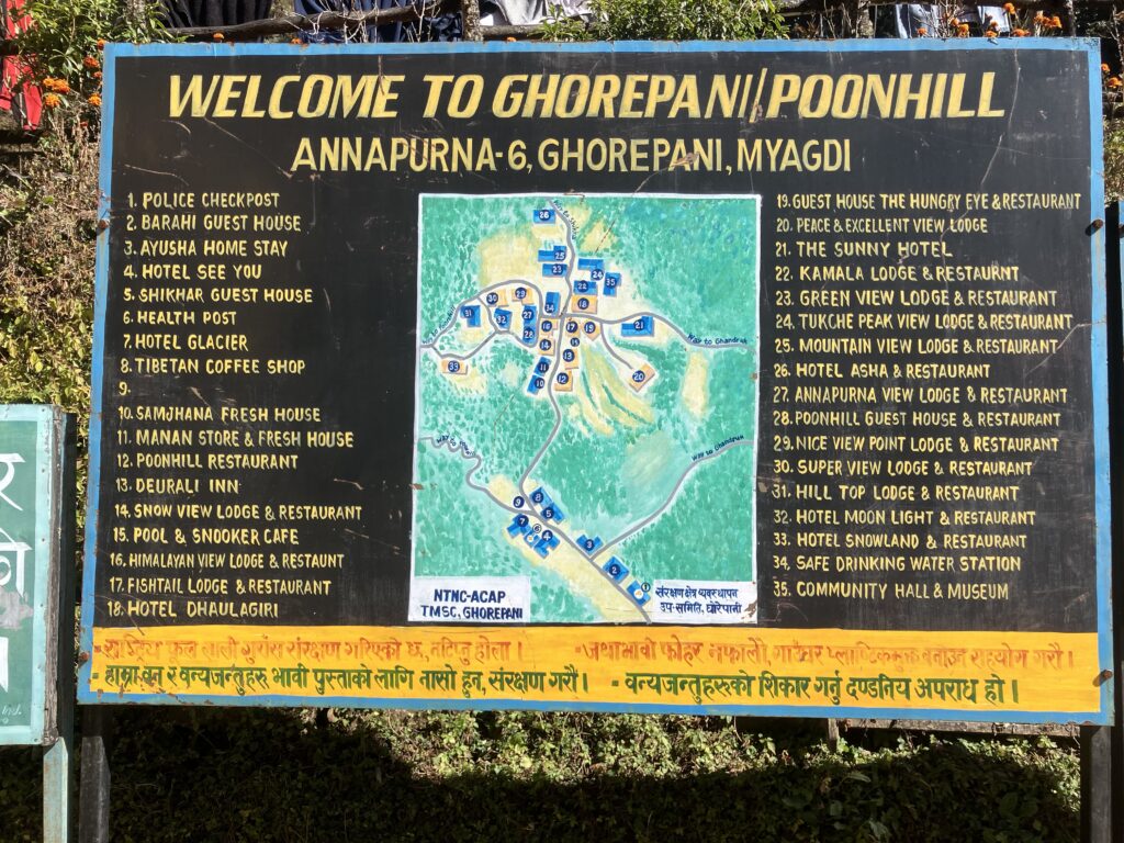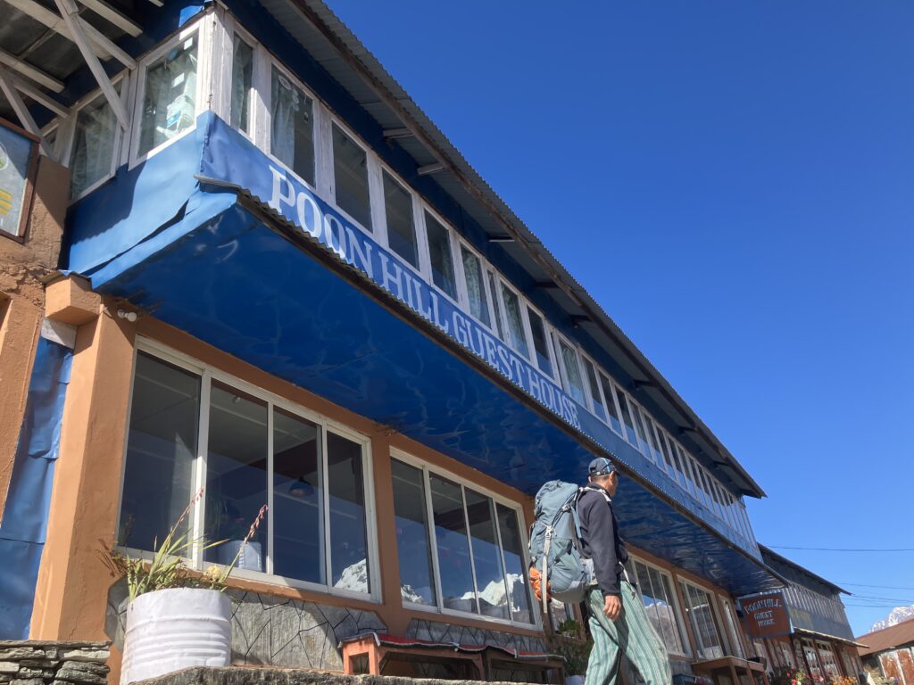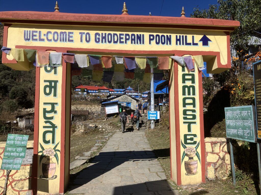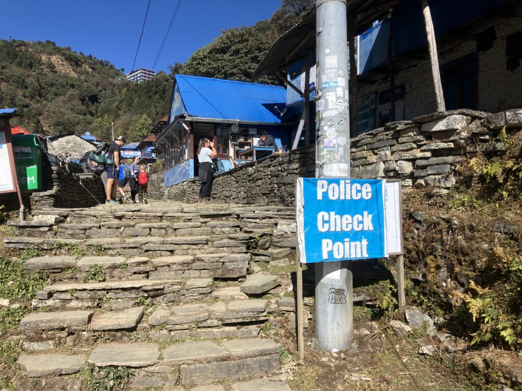 まずは村の門をくぐって下の村のポリスチェックポイントで入村の登録をします。今回はガイドが全て行ってくれました。今回は、次の日のプーン・ヒル(Poon Hill)の日の出のトレッキングの時間短縮のためにも、上の村で宿泊しました。
