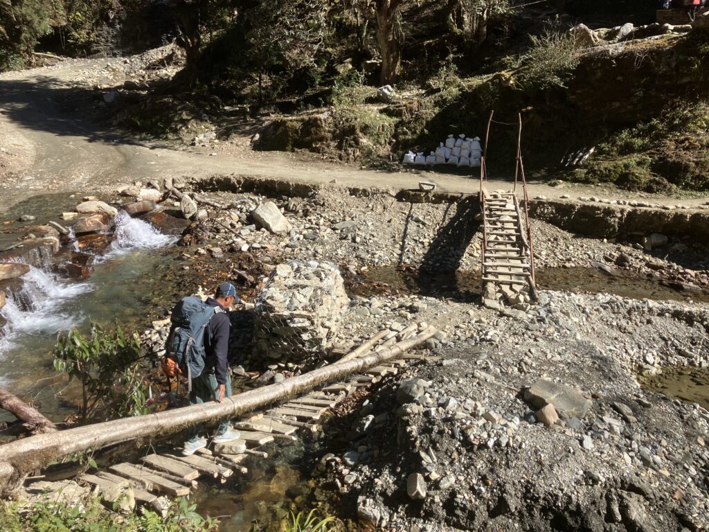 合流地点から30分ほど進むとナンゲタンティ(Nangge Thanti、2,460m)に到着します。ナンゲタンティを過ぎると、また2手に分かれる場所に着きます。