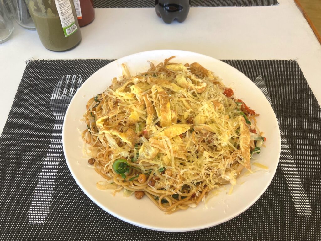 ランチはチキンと卵と野菜のチョーメンというネパールの焼きそばをいただきました。ソース味ではないですが、見た目は日本のものと同じで、味も非常に日本人の口に合うと思います!