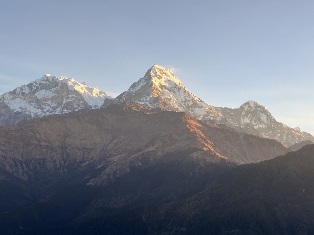 アンナプルナ1峰、シングチュリ、ヒウンチュリは3峰が真ん中で重なってしまっているので、1つ1つを見分けにくいです。