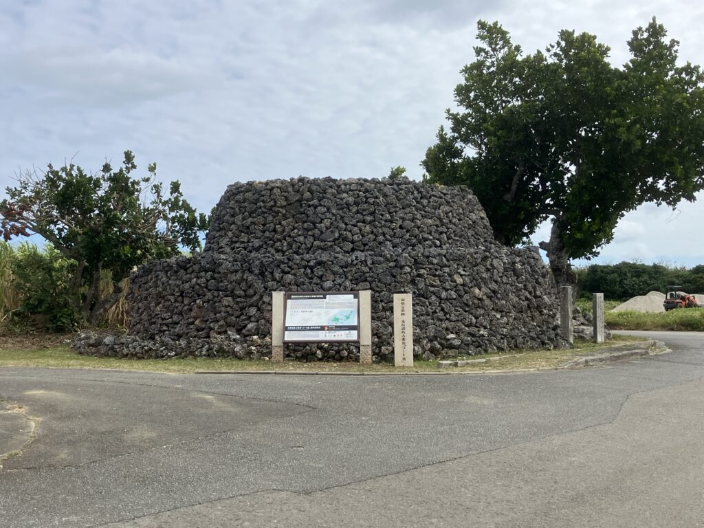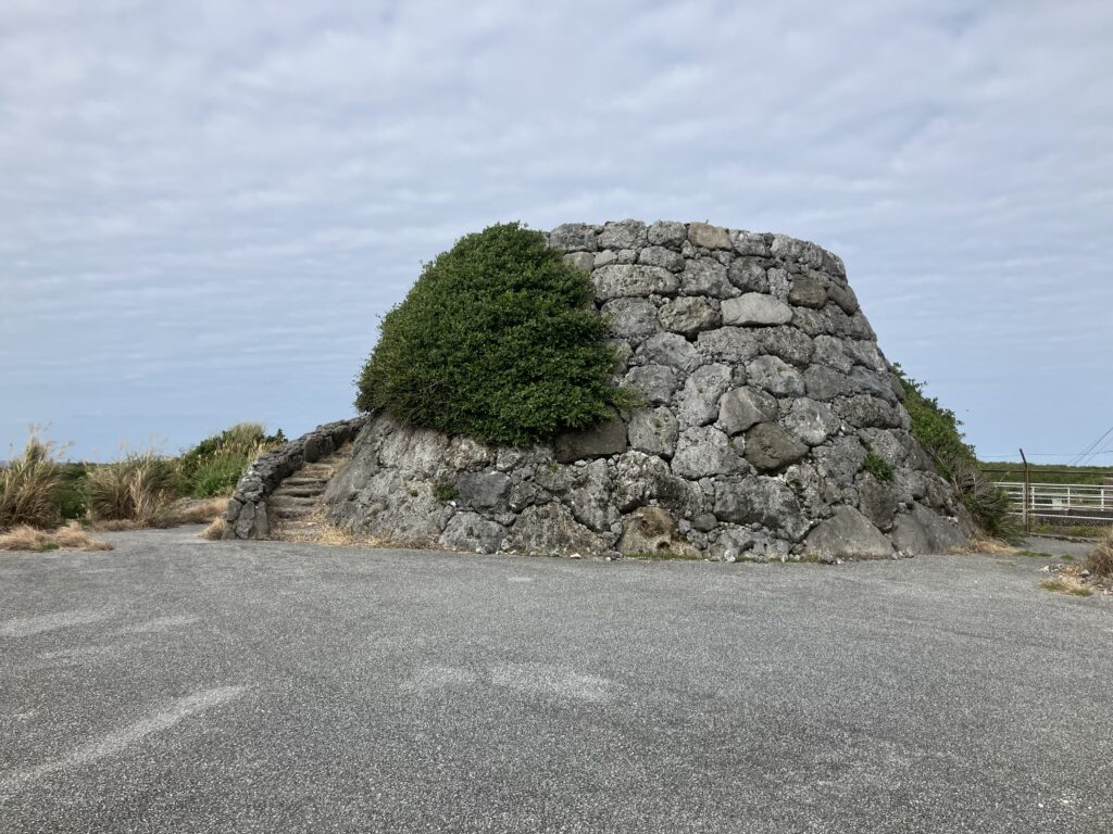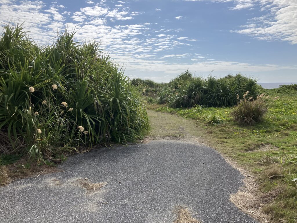波照間空港側から向かうと、星空観測タワーのドーム型の屋根が植物の上からちょこっと姿を表すくらいのタイミングで、道路の左側に土の未舗装の道があります。特に看板がないので、最初は気づきませんでしたが、こちらの道を進むとすぐに高那崎に到着します。