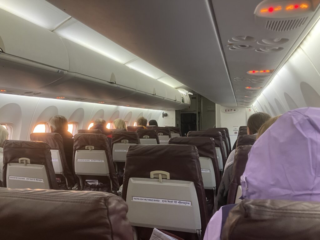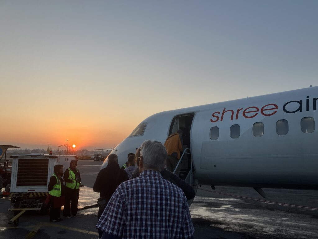 特に説明は無しです。私の便はバスの中で30分ほど待たされました。飛行時間は50分ほどでエベレストなどのヒマラヤ山脈の眺望を楽しめます。