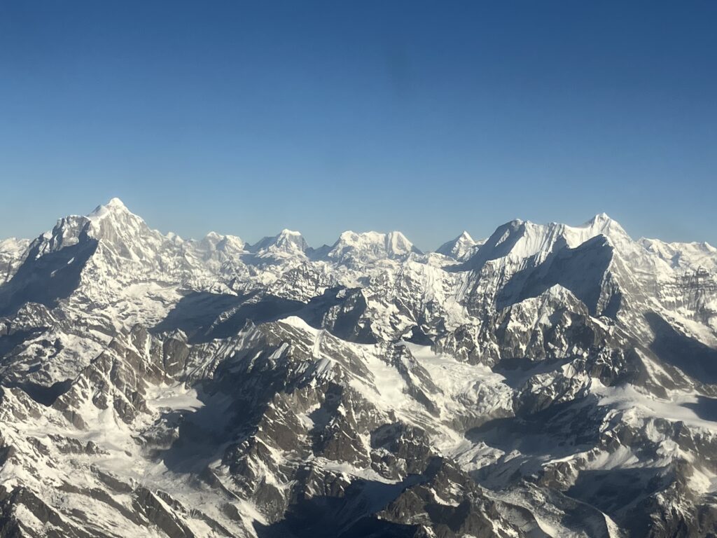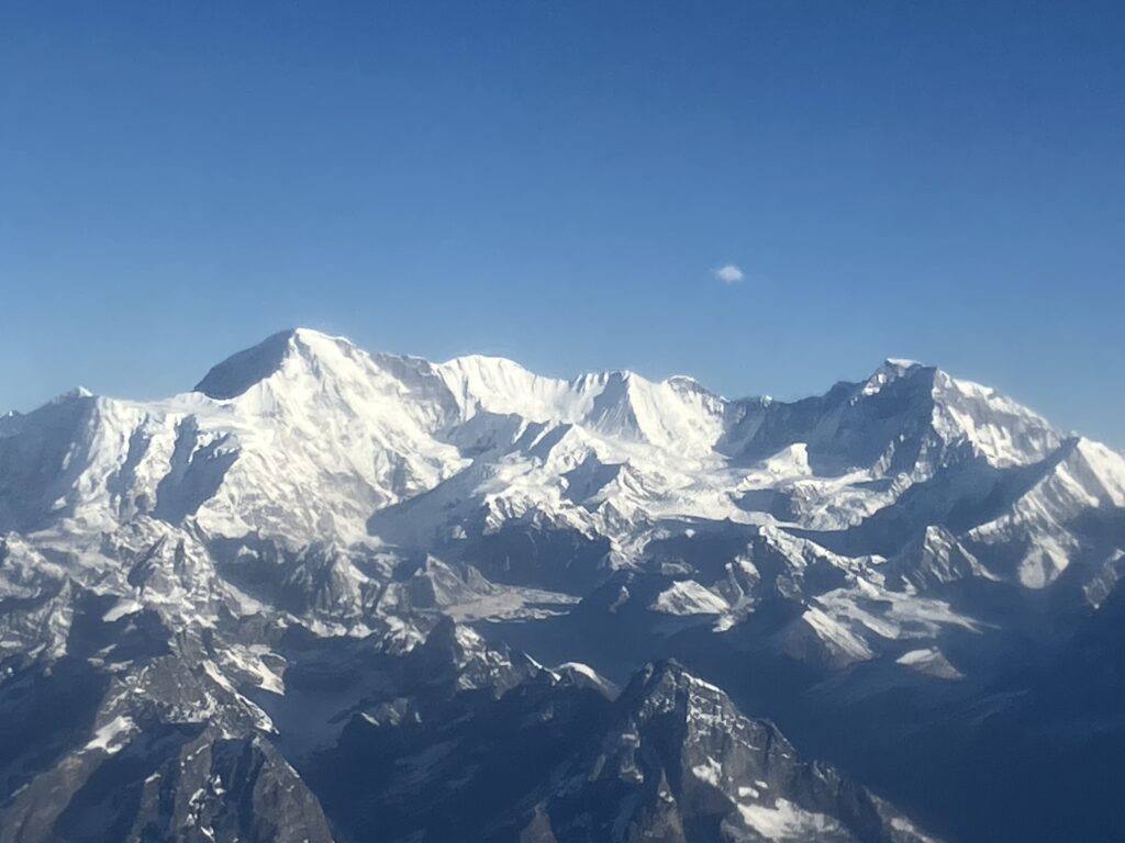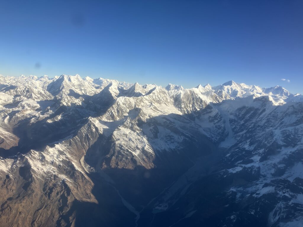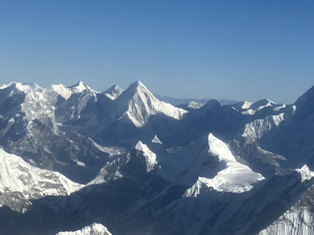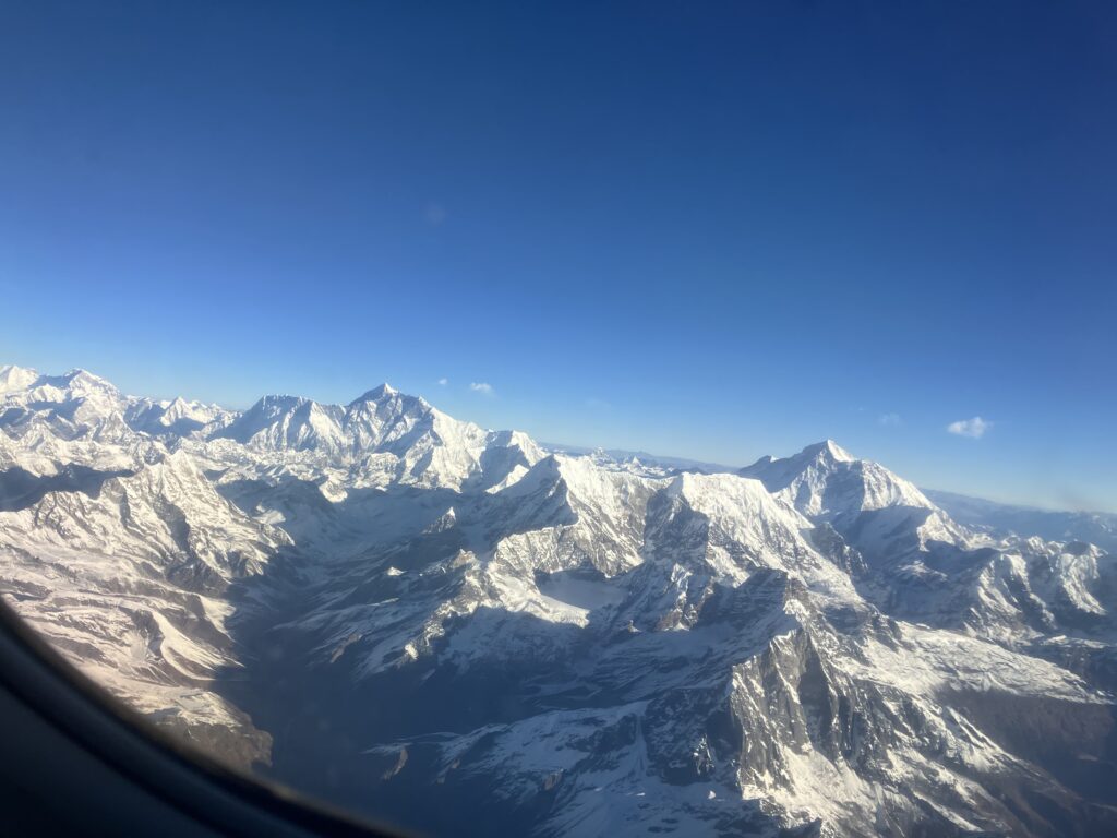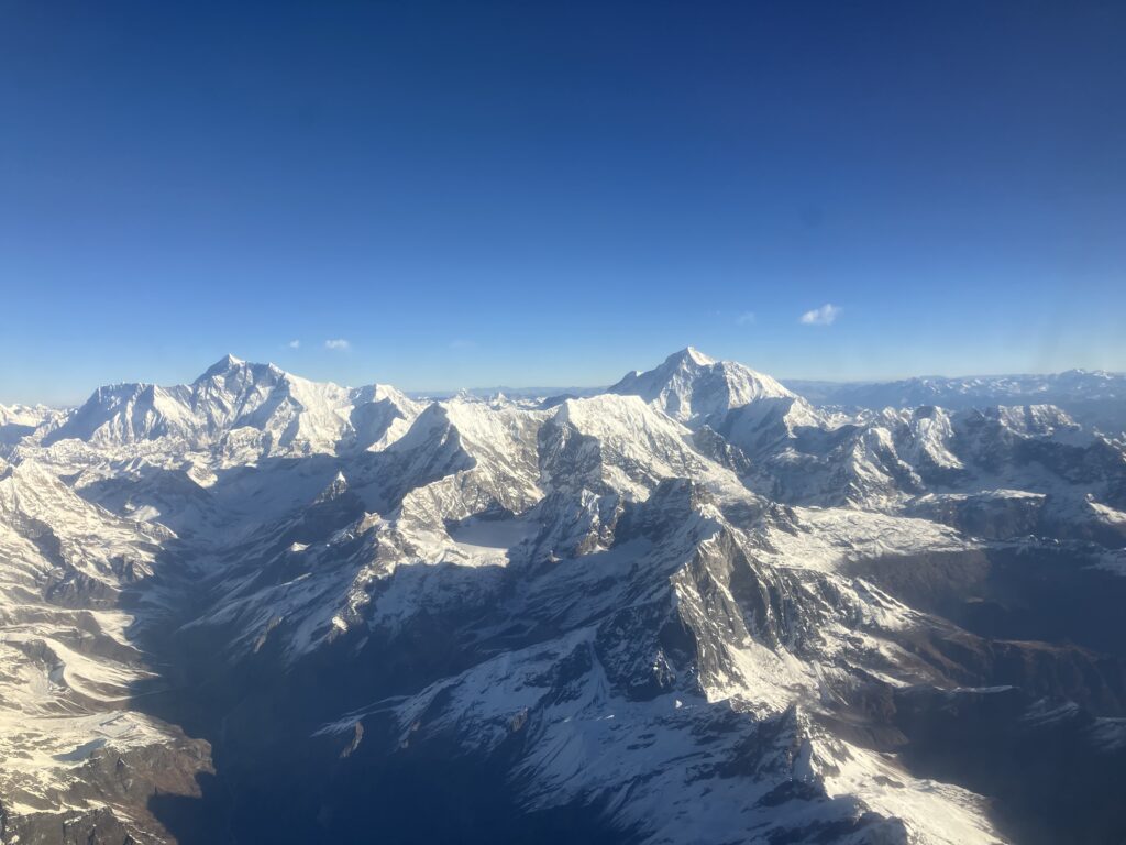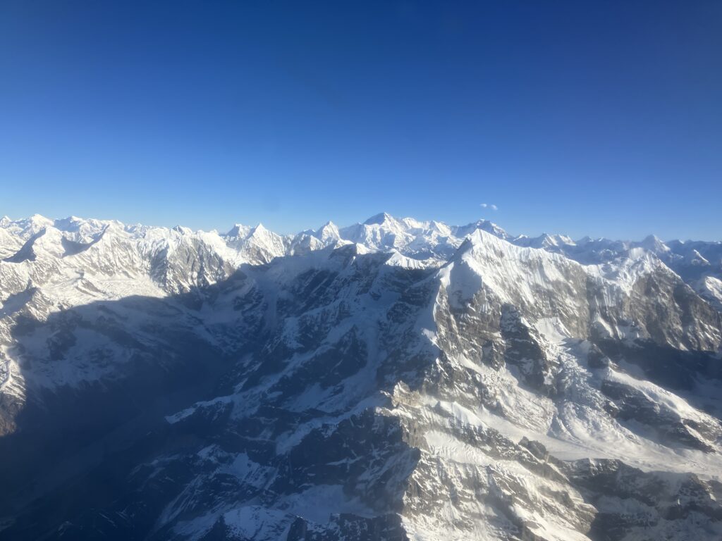 当日は、ほとんど雲のない抜群の状態でエベレストやマカルー、チョーオーユーなどの8,000mを超えるメジャーな山々を空から見ることができました!