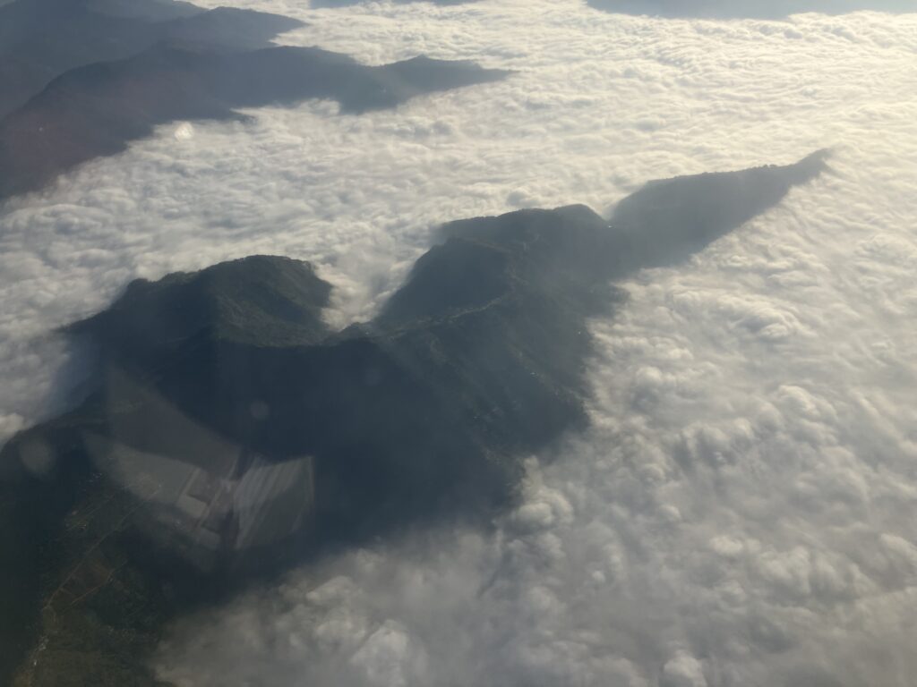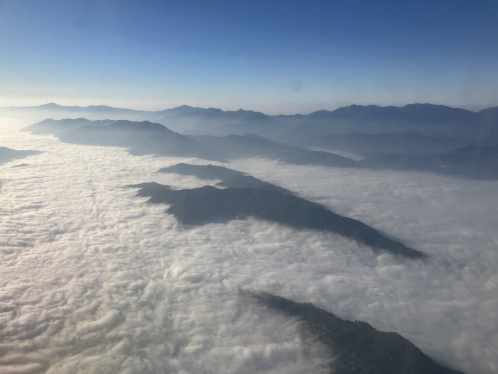 なお、マウンテンフライトといえば、当たり前ですがヒマラヤ山脈が主役なのですが、フライト後半で見れたヒマラヤ山脈にかぶさる雲海が、人生でみた雲海の中でも1番圧倒的に美しい雲海でした!