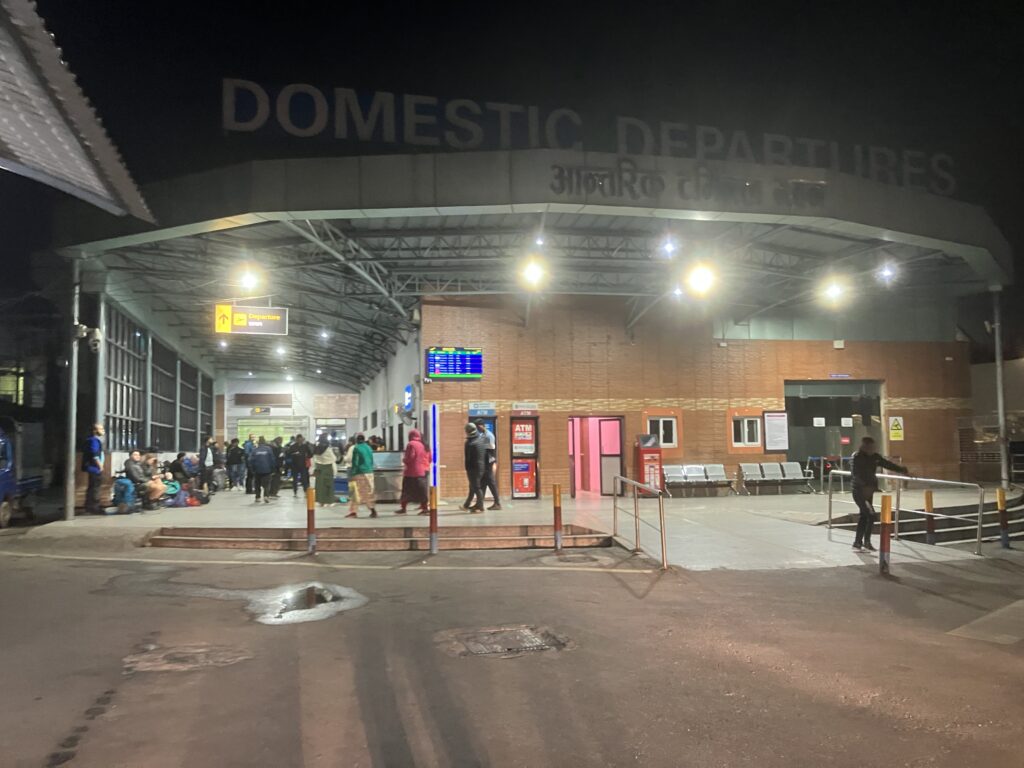 マウンテンフライトの当日は、朝の4:45に車が迎えにきて空港へ出発しました。20分ほどで空港に到着します。国内線ターミナルは5時15分に開くため、それまでは外で待っています。