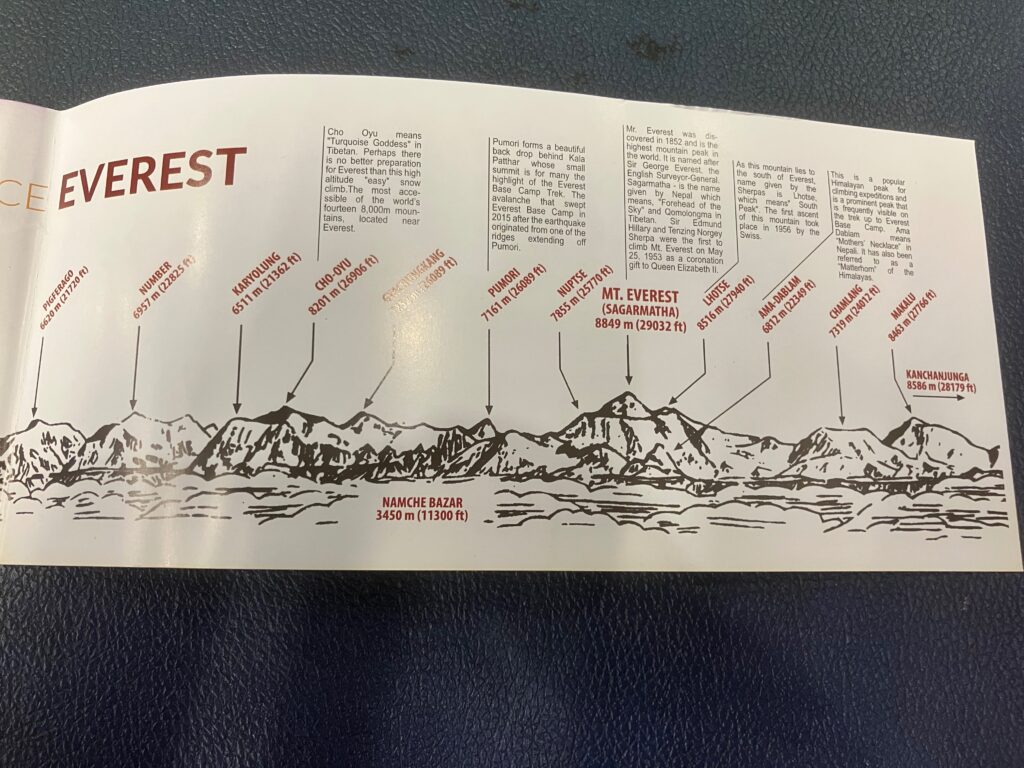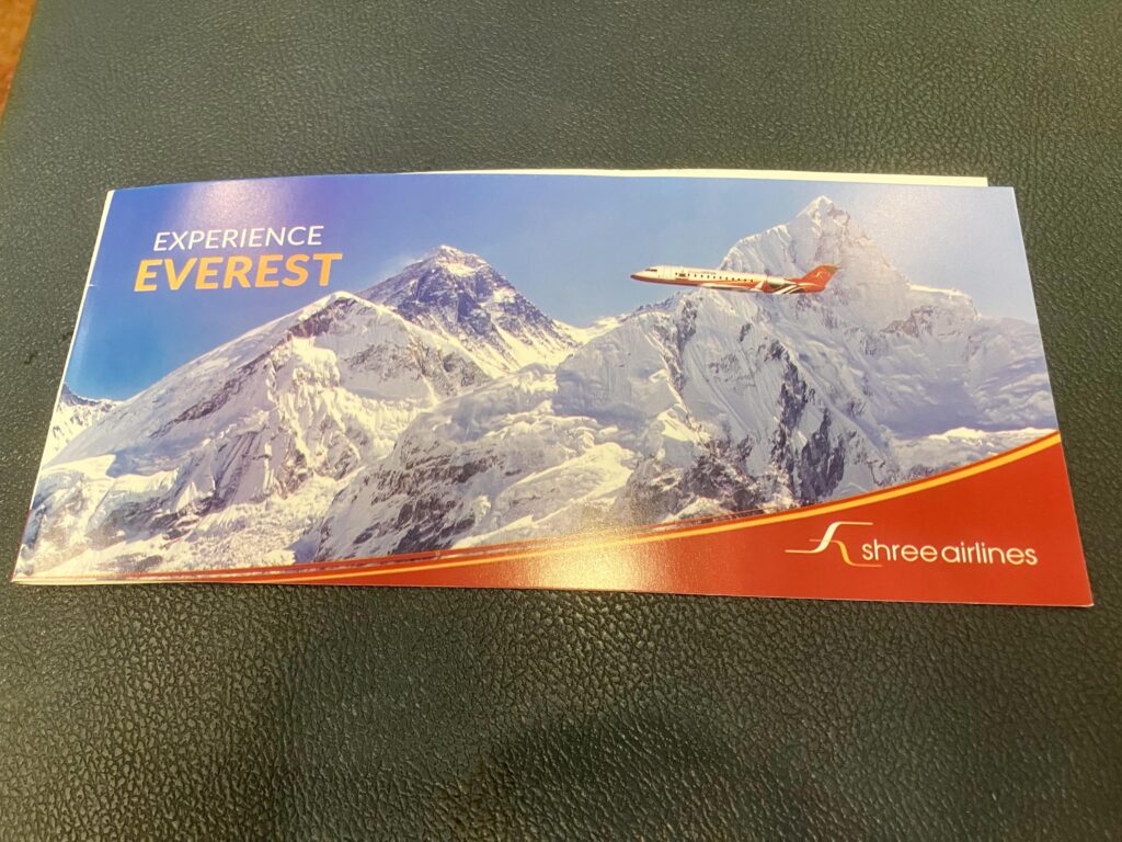 チェックイン時にはパスポートと予約の詳細を見せると、搭乗券と、遊覧飛行で見えるヒマラヤ山脈の案内の冊子をくれます。