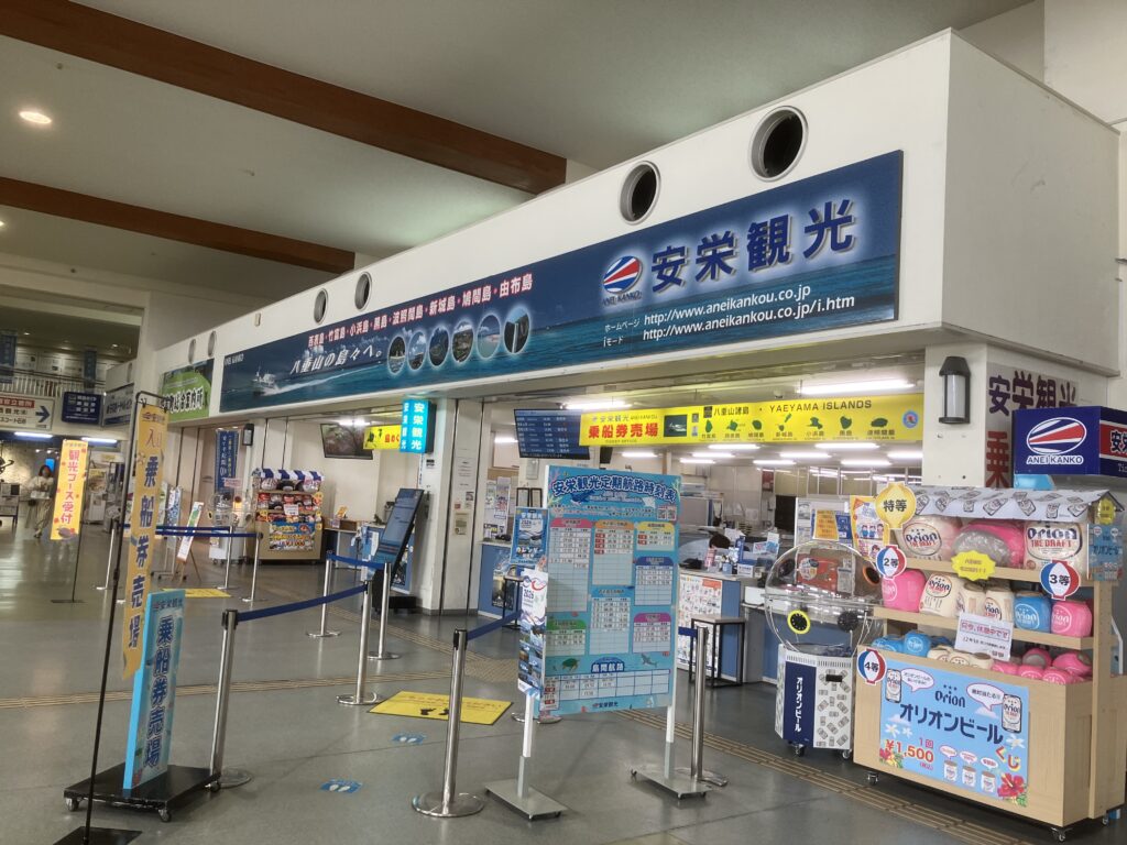 正面入り口から離島ターミナルに入ると、右側が安栄観光、左側が八重山観光フェリーのカウンターになります。