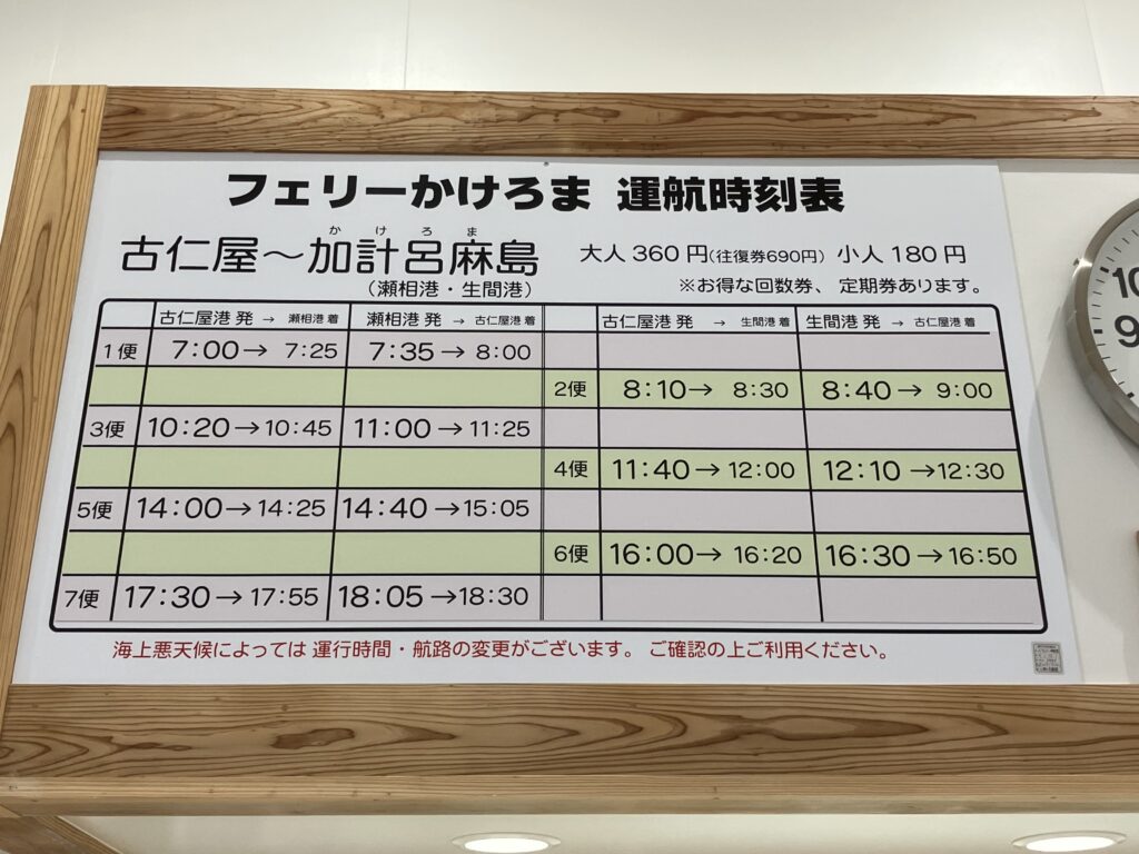 帰りで時間がもし余っても、瀬相港の待合室はWifiも利用できますし、目の前にお土産屋さんがあるので、時間潰しはできると思います。