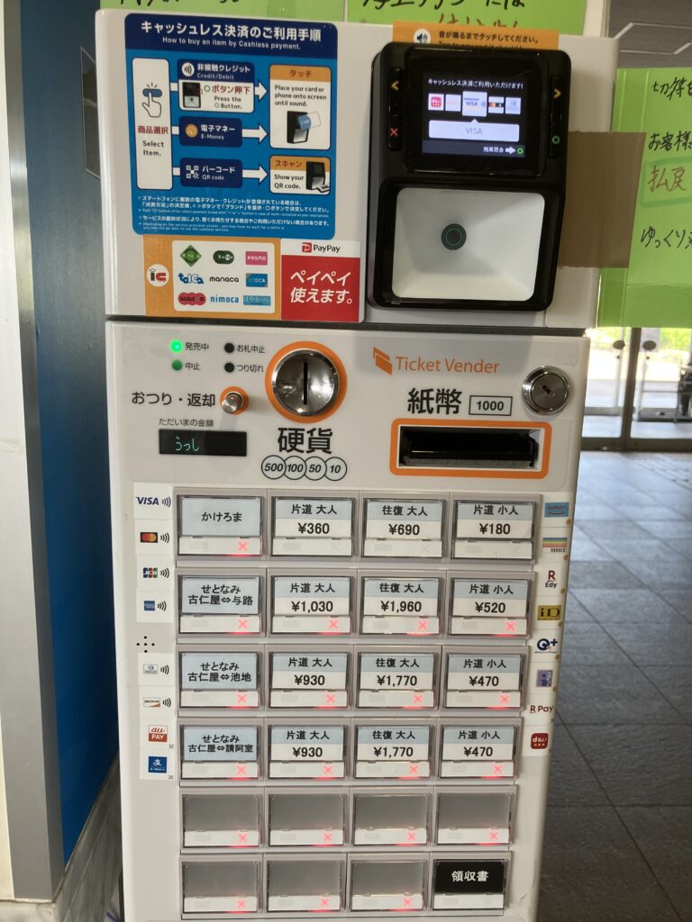 購入は有人カウンターでもできますが、カウンターの右にある自動券売機であれば、クレジットカードやQR決済が可能です。
