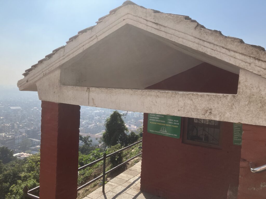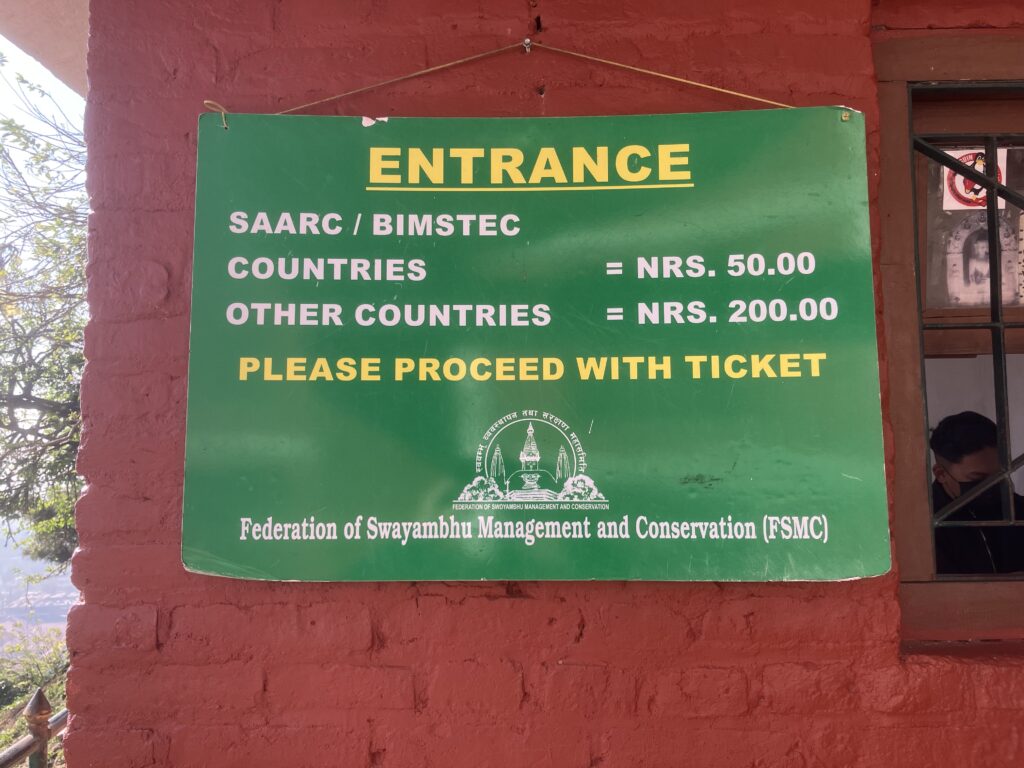 最後の坂の最後の方で左手に入場チケットのカウンターがあり、外国人は200NPR(約220円)です。インドなどの周辺国の人と現地人は50NPR(約55円)でした。