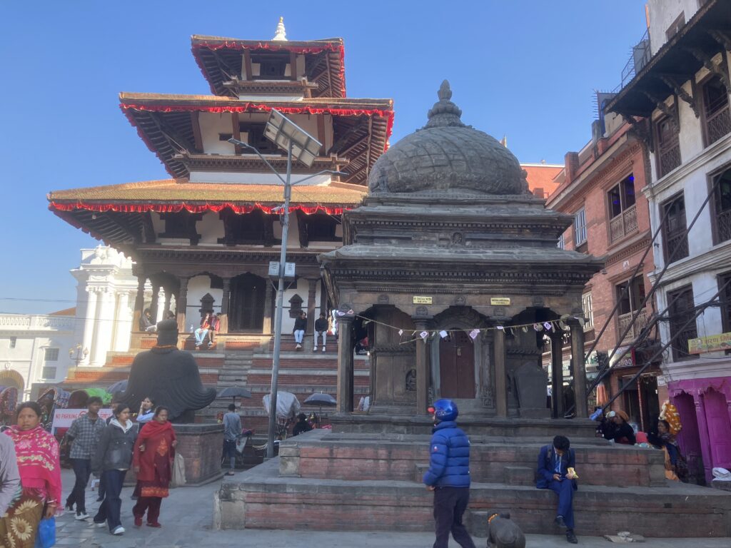 ハヌマン・ドカを出ると左側にタレジュ・ベル、シヴァ・パールバティー寺院、シヴァ寺院、アショク・ビナヤク、カスタマンダブ寺院、ナラヤン寺院と中小の寺院群の見どころが固まっています。