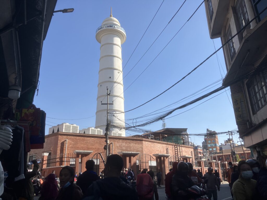 ダルバール広場から20分ほど南東に進んでいくと、カトマンズのシンボルである見張り塔のダーラハラがあります。