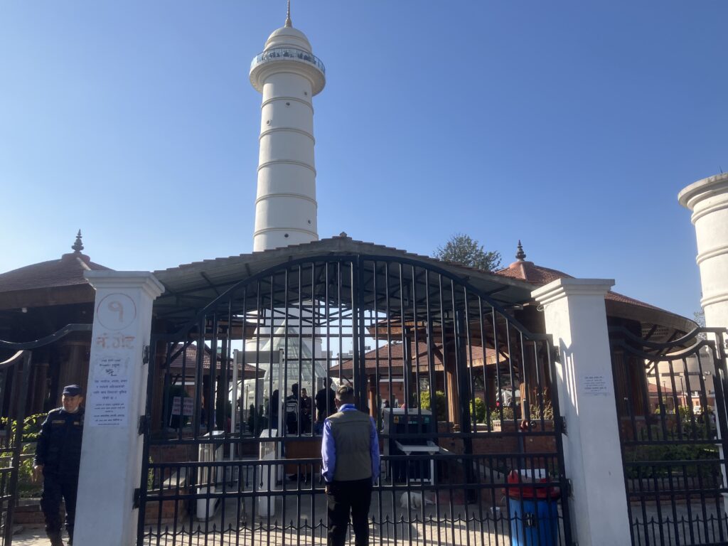 ダーラハラの入り口は大通り沿いにあります。入り口の案内やチケットオフィスが全てネパール後で書かれているのですが、入場して塔を登るには、外国人は1,000NPR(約1,100円)とかなり高めの料金になっていたため、外観だけ見て終了しました。