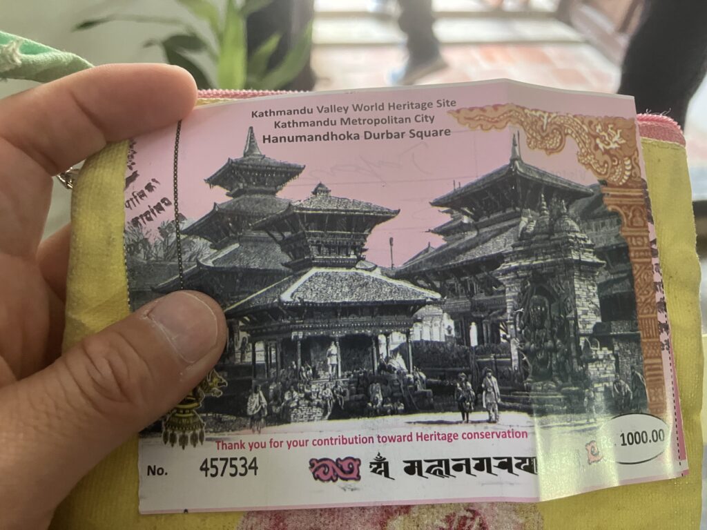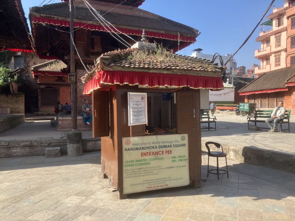ダルバール広場周辺は各入り口にチケット売り場があり、外国人は1,000NPR(約1,100円)となっています。