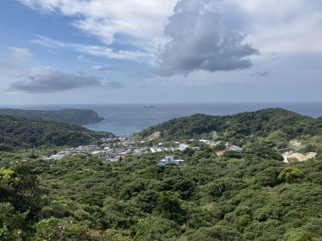 黒山登山口付近からの神津島港方面の景色