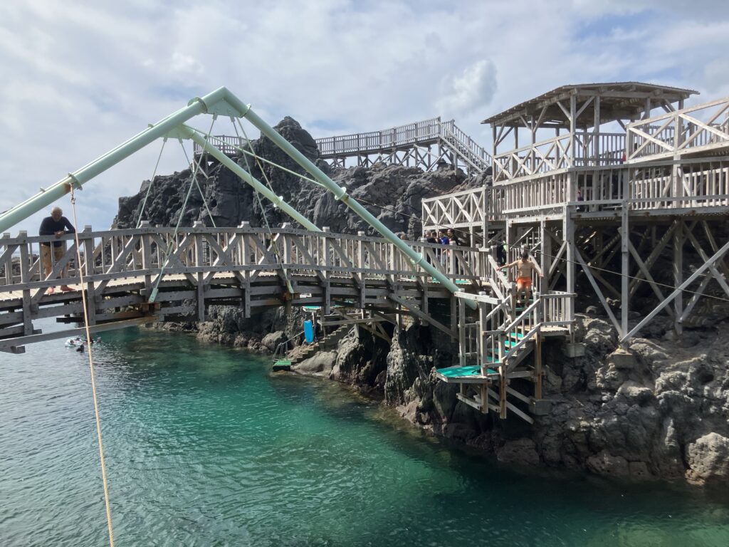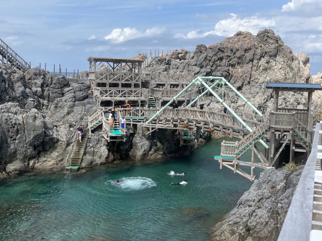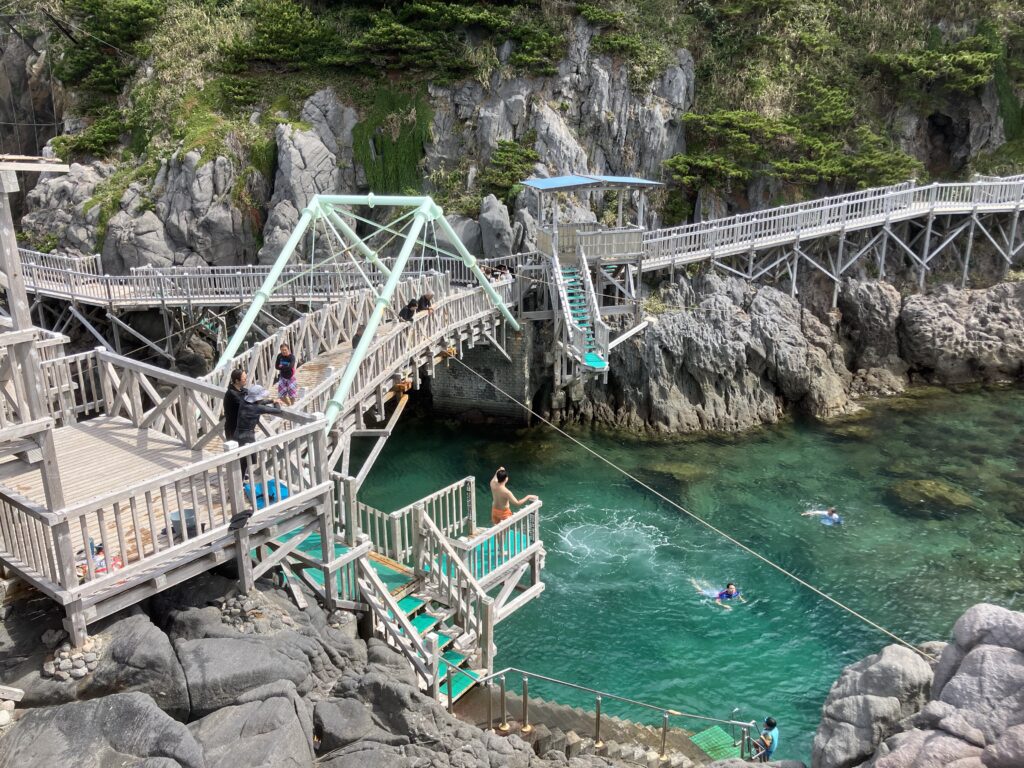 赤崎遊歩道は入場無料とは思えないくらい満足度の高い場所です。遊歩道があるので、遊歩道の散策だけでも楽しいのですが、友人、ファミリー、カップルでの旅行であれば、ここで泳いだり、飛び込んだり、シュノーケリングしたりすると絶対に楽しいと思います!