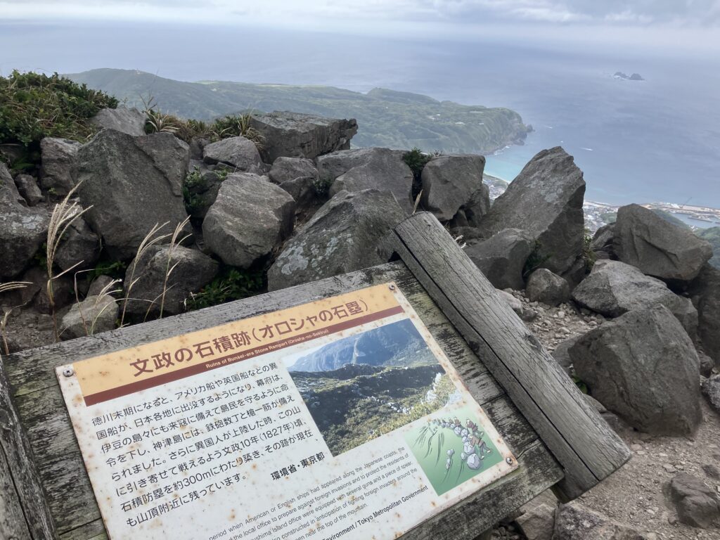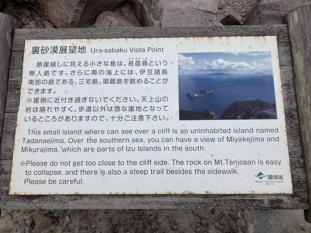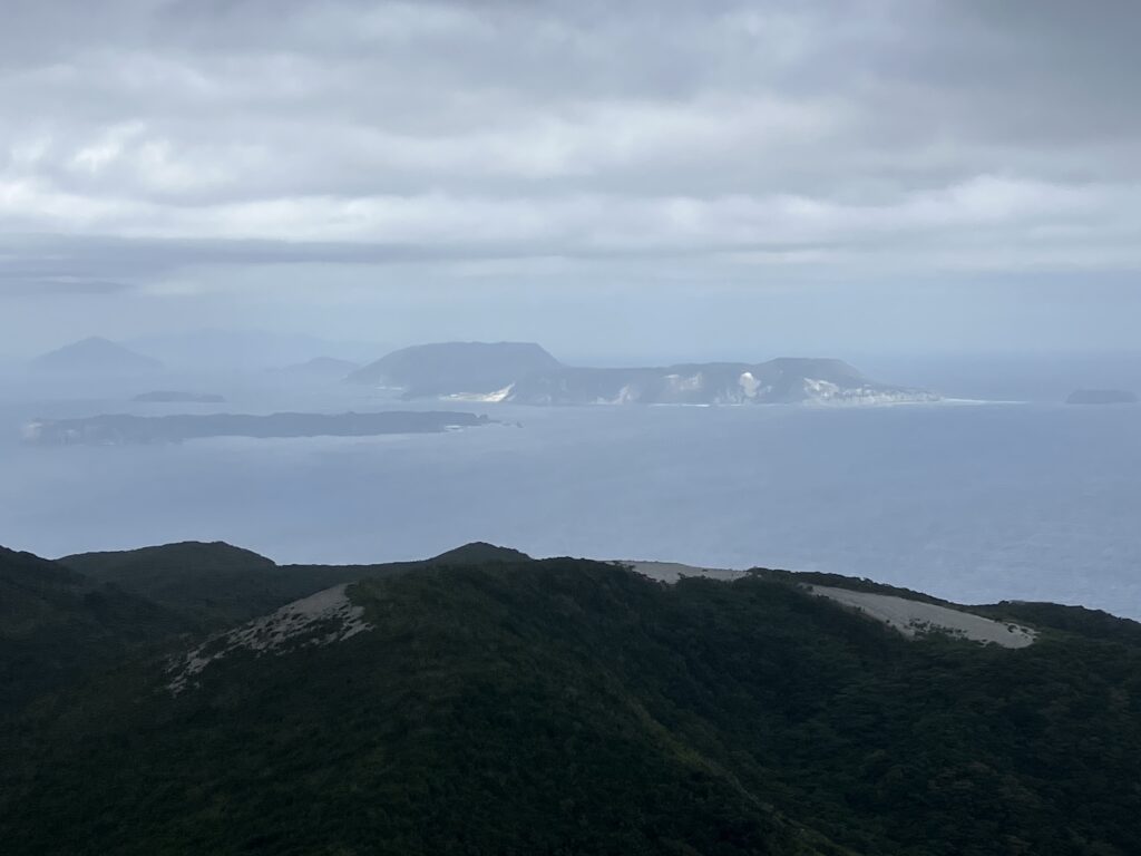 天気が良ければ三宅島や御蔵島が見えます。今回は若干くもってて三宅島しか見えませんでした。