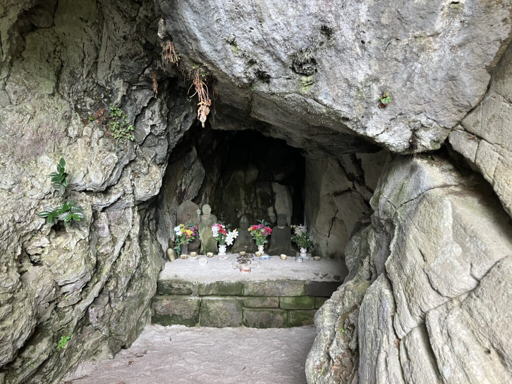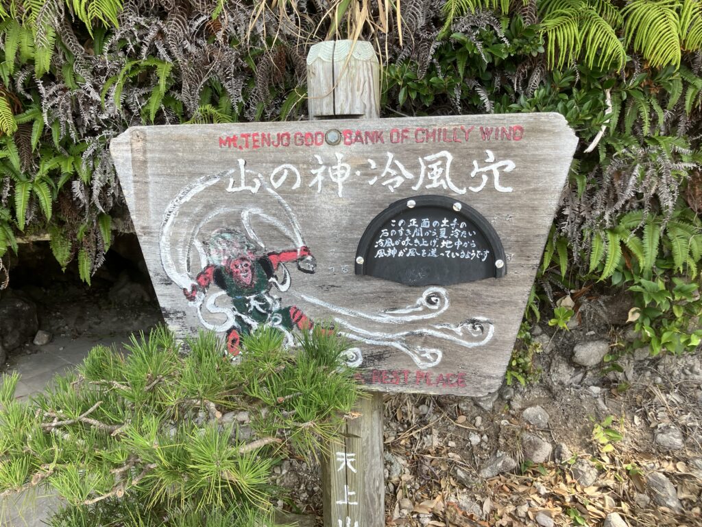 港から登山口に到着する直前に「山の神 冷風穴」という涼しい風が出てくる穴があります。そちらを過ぎるとすぐに黒山登山口に到着します。
