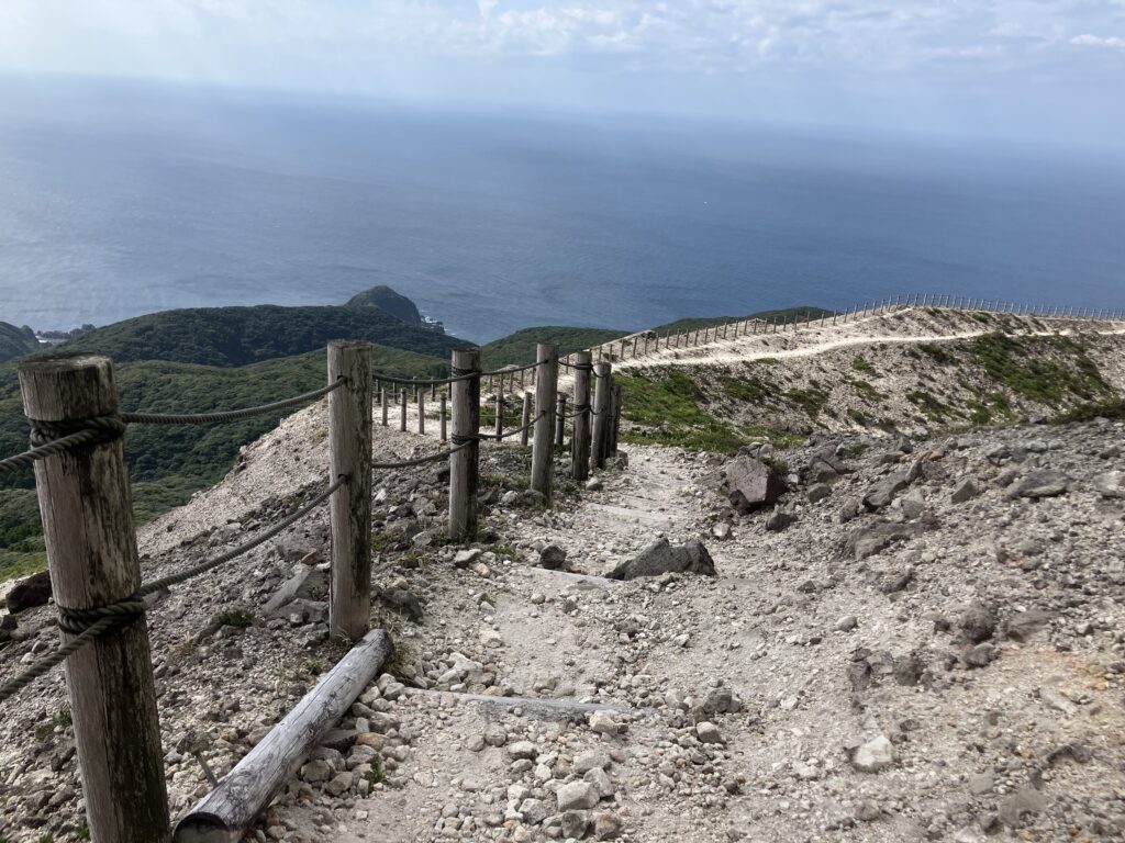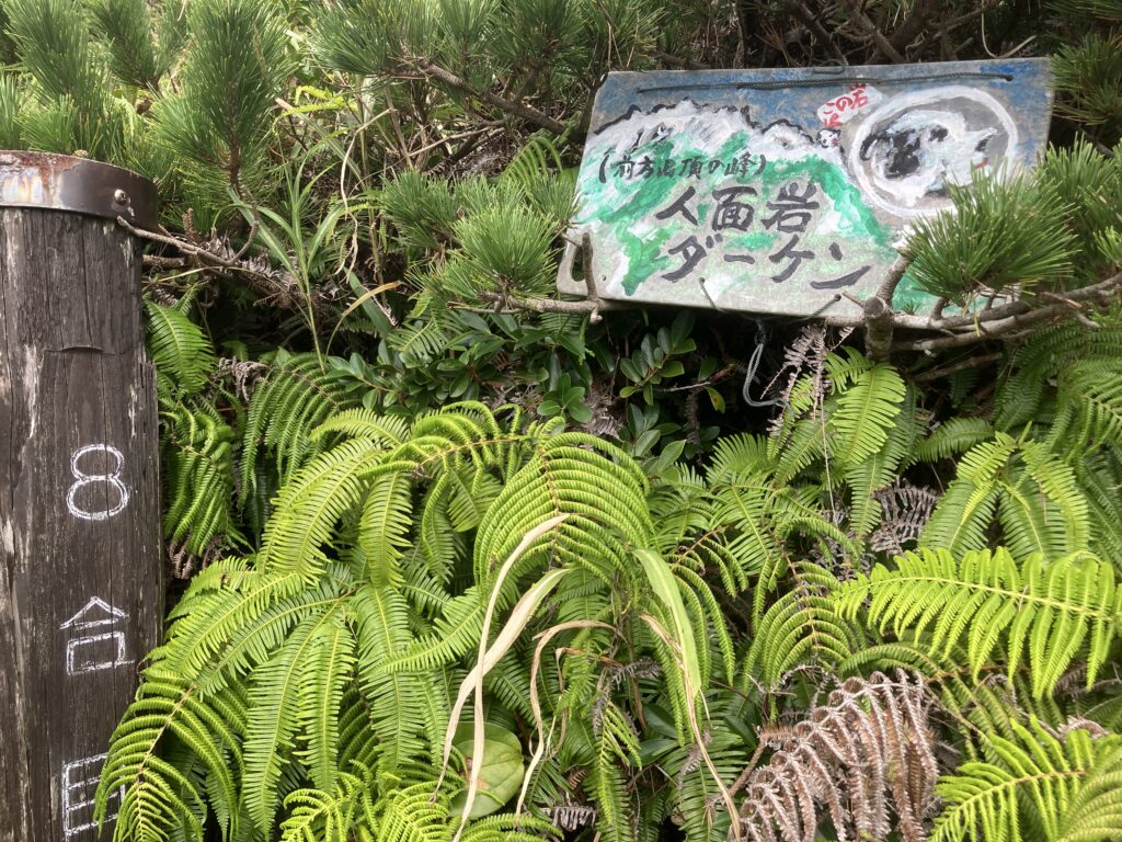 途中、草が覆い茂った場所があったりしますし、8合目には人面岩があったりと、景色に変化もあるので、楽しみながら登っていくと、きつい坂道でも若干気がまぎれると思います!