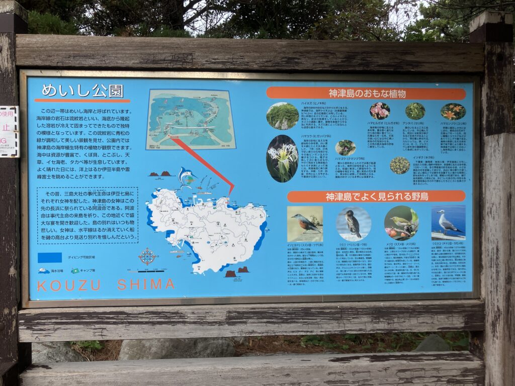 逆からも入ることができるので、赤崎遊歩道から歩いてきたのであれば、神津本道側から入って、神津島温泉保養センター側に出た方が効率的かと思います。