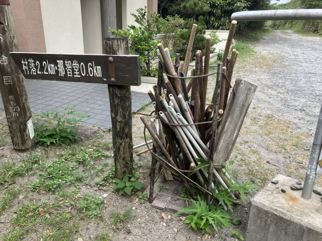 入り口に木の杖が置いてあり、無料で借りれるので、絶対借りて行きましょう!早速のぼりが急で必要になります!山頂付近でもクモの巣を避けたりするのに重宝します!