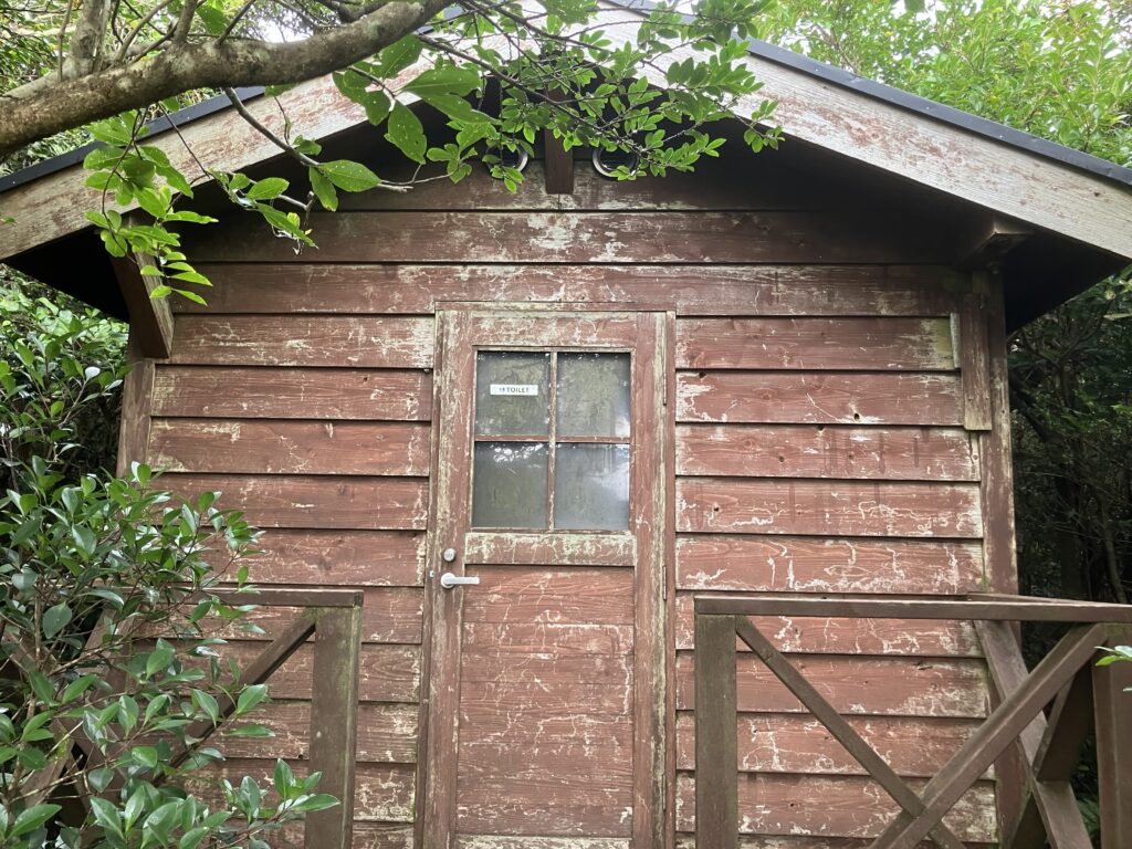 不動池も干上がっており、水が全くありませんでした…残念。不動池の近くに小屋があり、一見トイレに見えないのですが、道中唯一のトイレがここにあります。