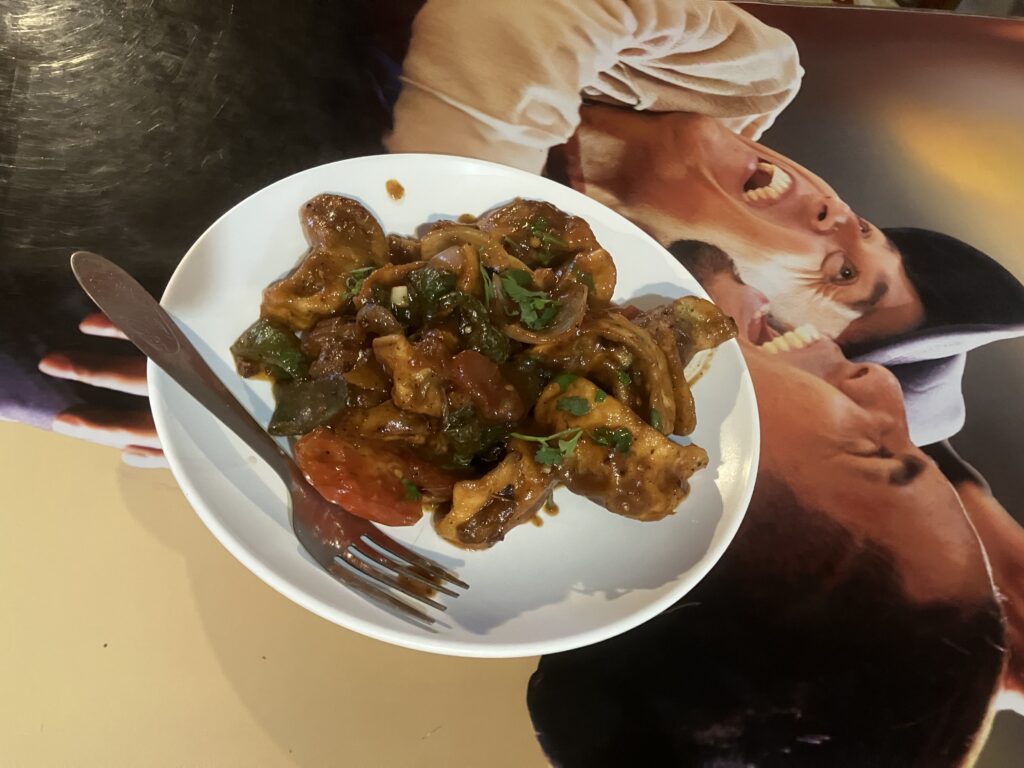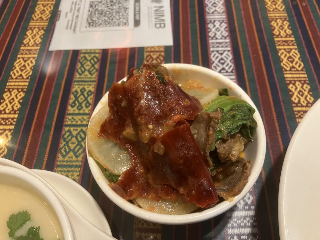 揚げたモモを辛いソースと野菜でからめた一品でめちゃくちゃおいしいです。実はこれ、個人的に今回食べたチベット料理で1番のお気に入りです!