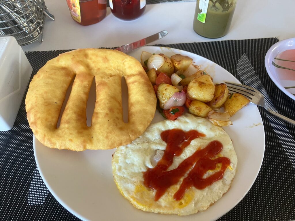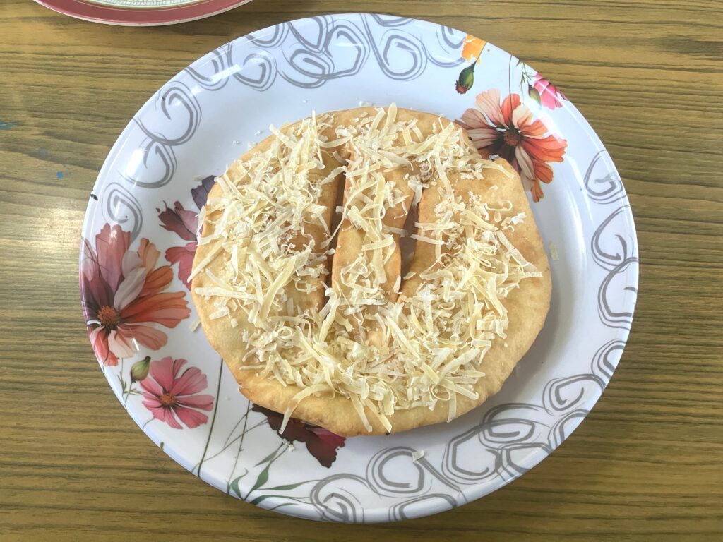 ・ランドルクの朝食で食べたチベット・ブレッド with ヤクのチーズ(Tibetan Bread with Yak Cheese)