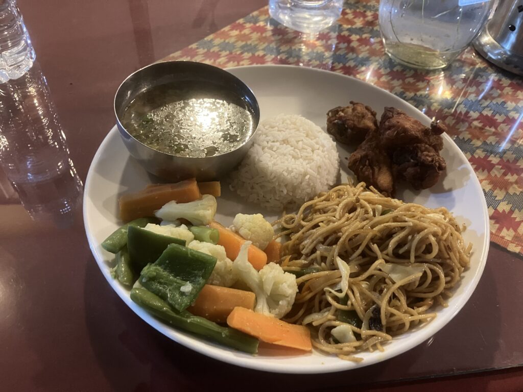 ・ゴレパニのランチでチキンと卵と野菜のチョーメン(Chowmen)