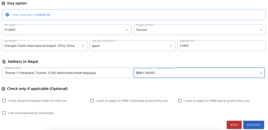 Contact Number of Nepal…最初のホテルの電話番号(空欄でも大丈夫です)