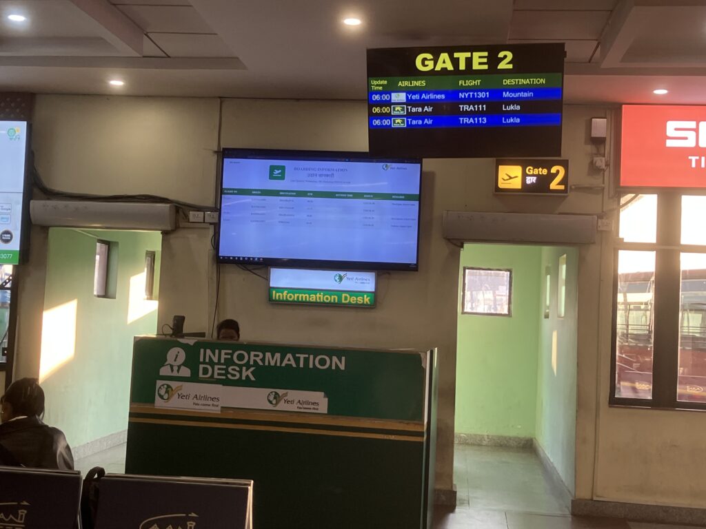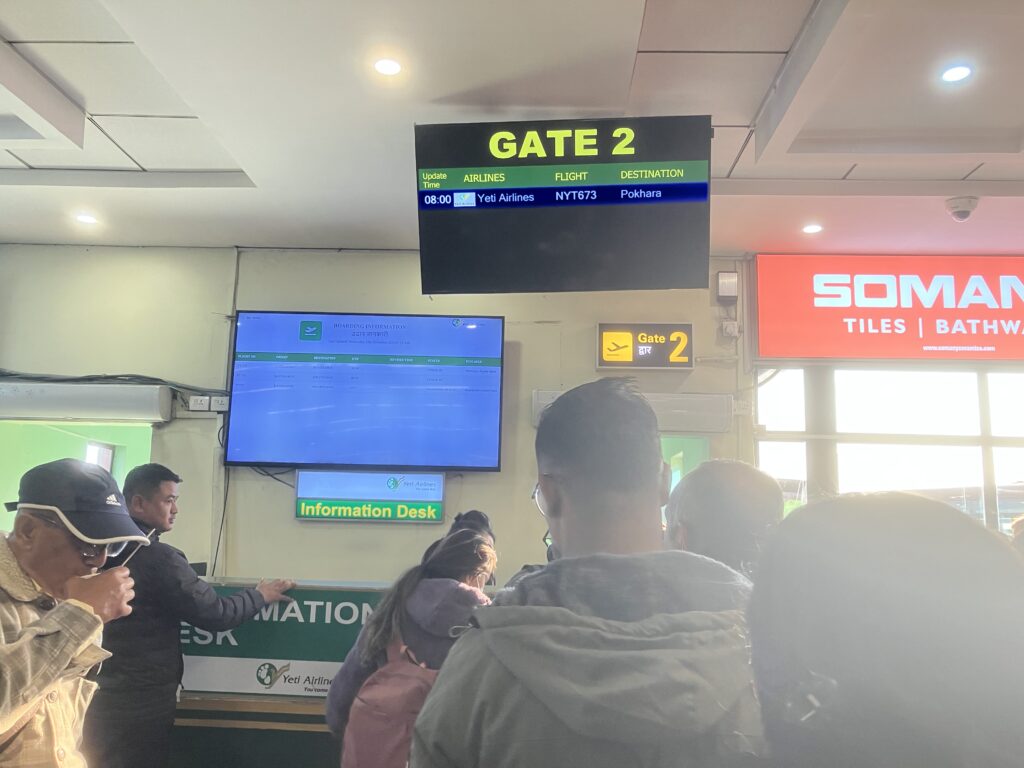 様子を見ているとどうも大体搭乗ゲートによって航空会社が割り当てられているようでした。例えば1番はシェリーエアラインズ、2番はイエティ・エアラインズのような感じです。