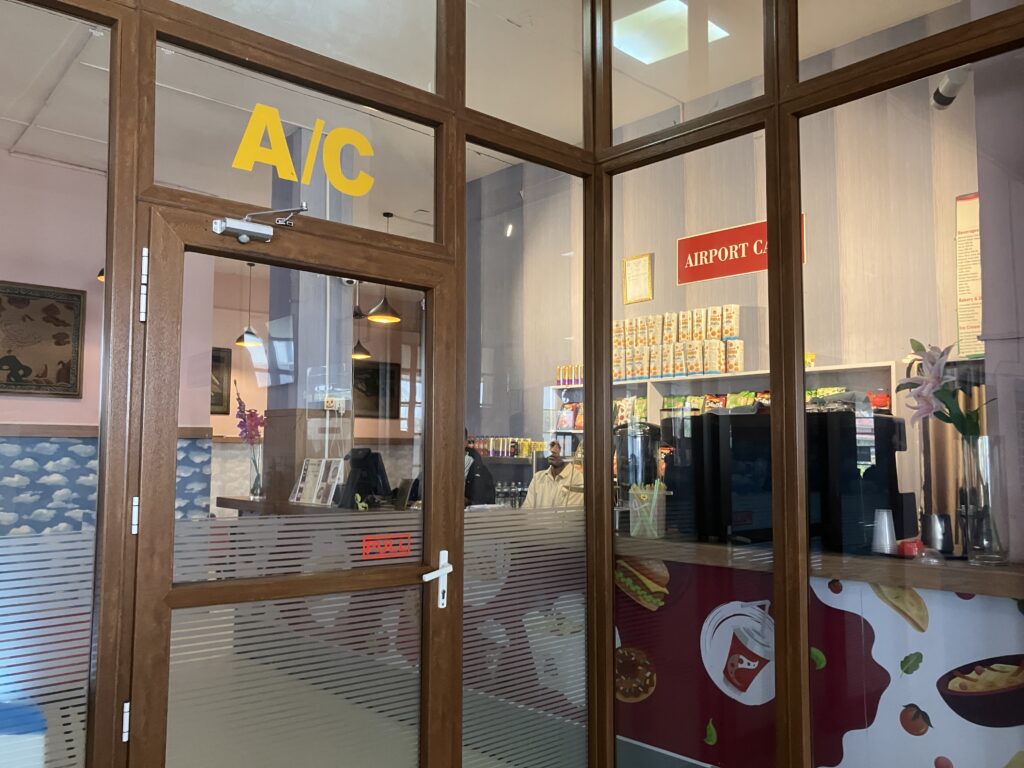 チェックインカウンターは出発時間の1時間20分前からオープンしました。このチェックインカウンターのエリアの奥にはトイレの横に小さなコーヒーショップもあります。