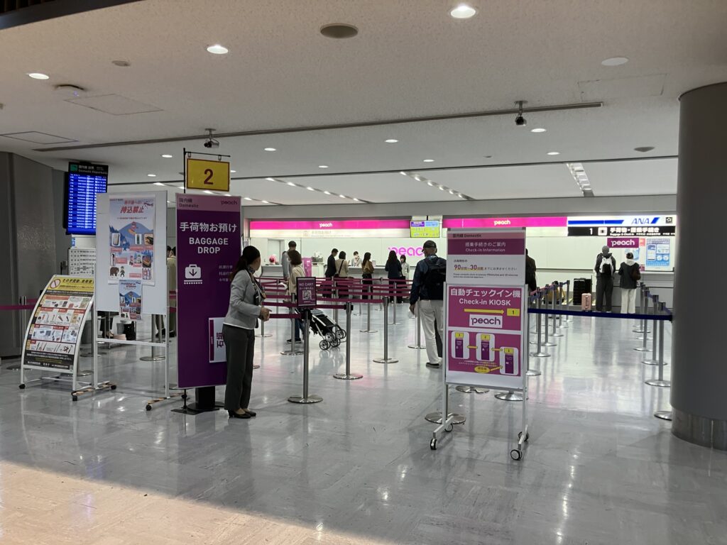 成田空港の場合、LCCの国内線は第2ターミナルの隣にある第3ターミナルの発着がほとんどですが、Peachの場合、親会社のANAと同じく、第1ターミナルからの発着のため、注意が必要です。