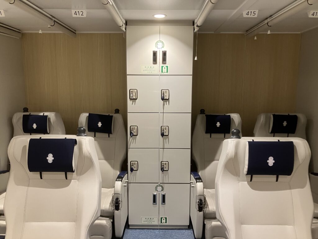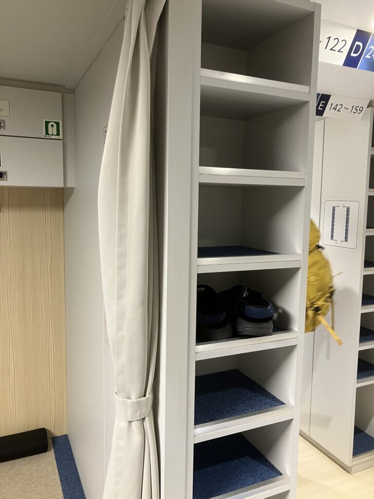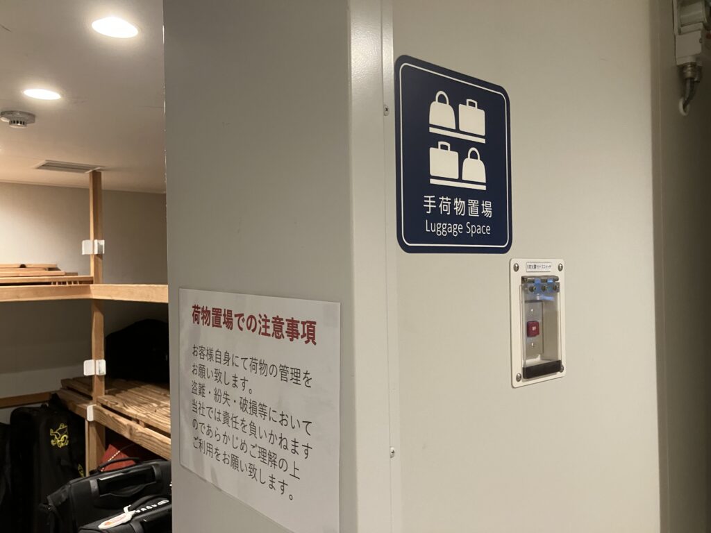 スペース自体は非常に狭いので、スーツケースやキャリーケース、リュックサックなどを持ち込んだ場合は、各階にある手荷物置き場に置きましょう。