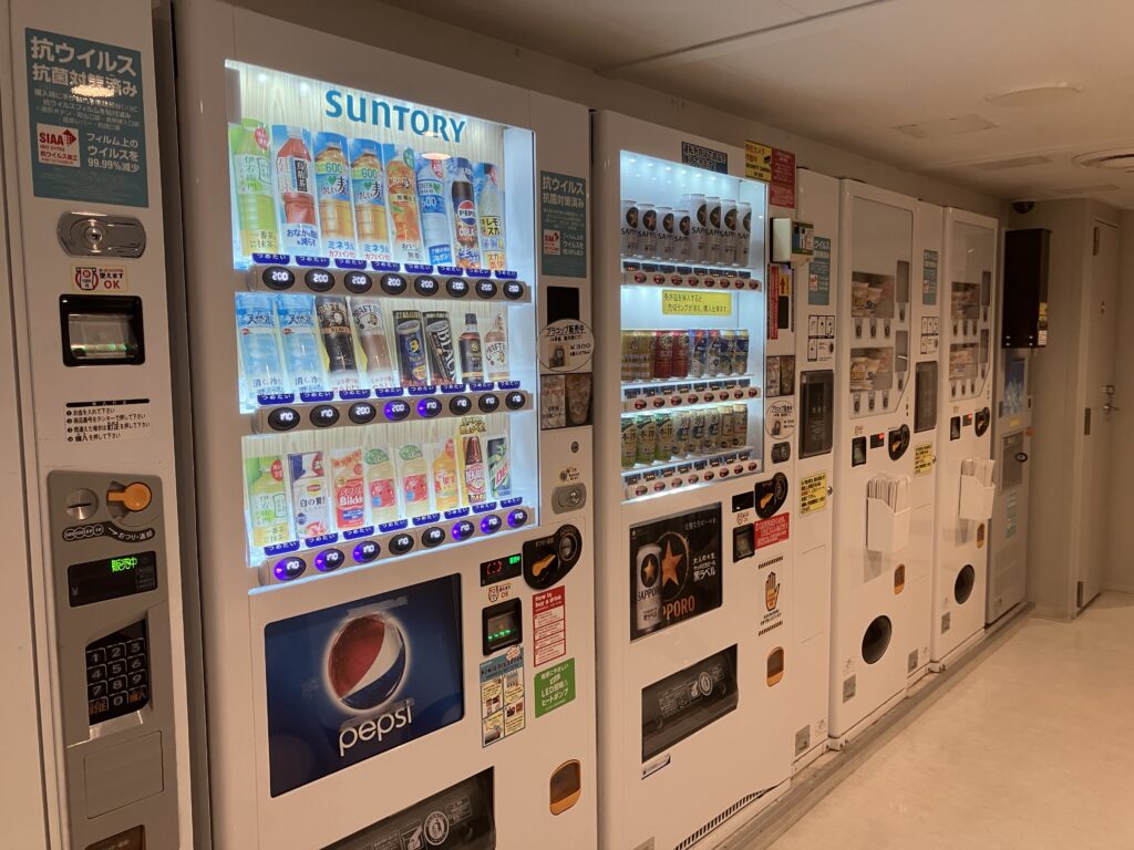 各階にはカップラーメンや飲み物、ホットフードなどの自販機も値段は若干高いですが、設置されています。